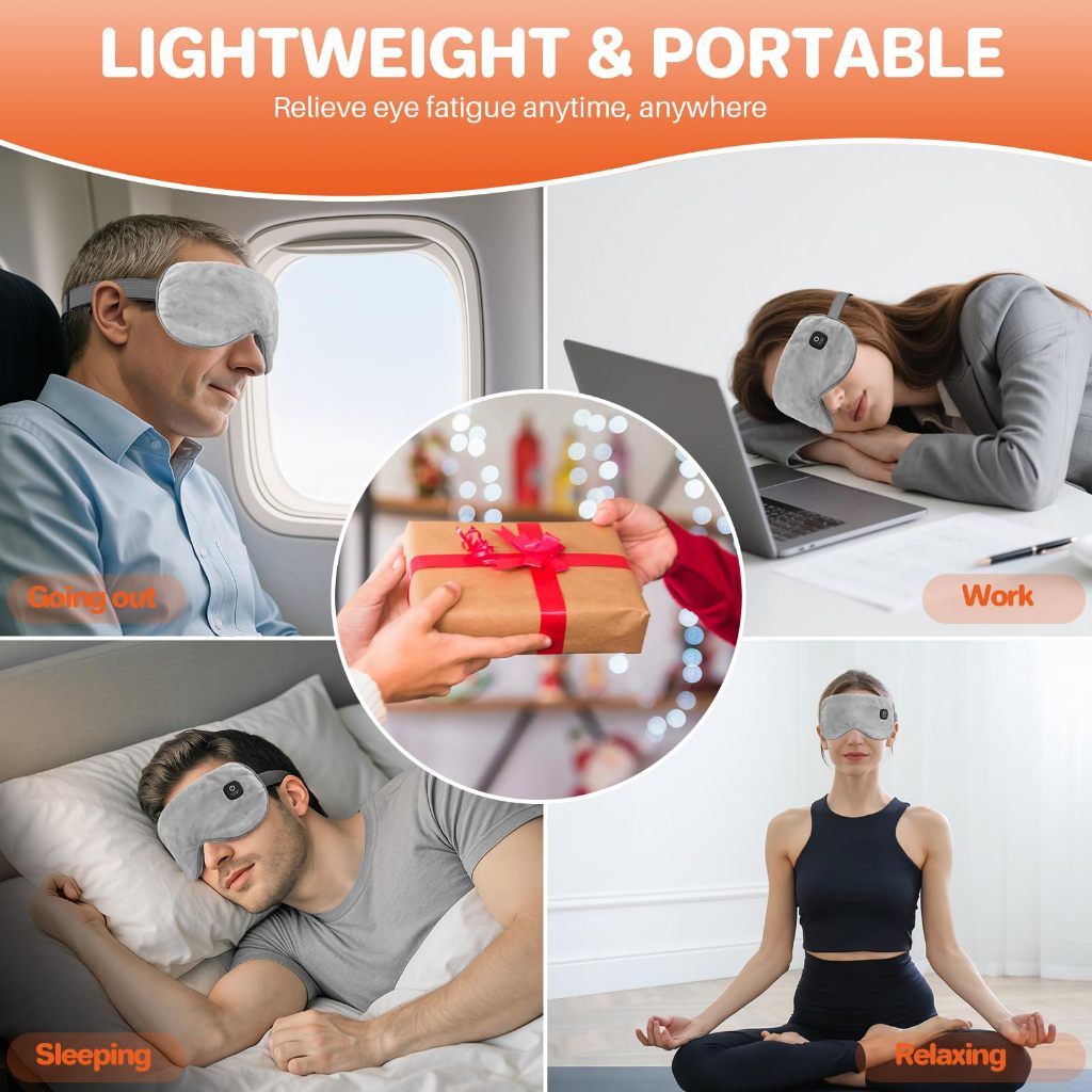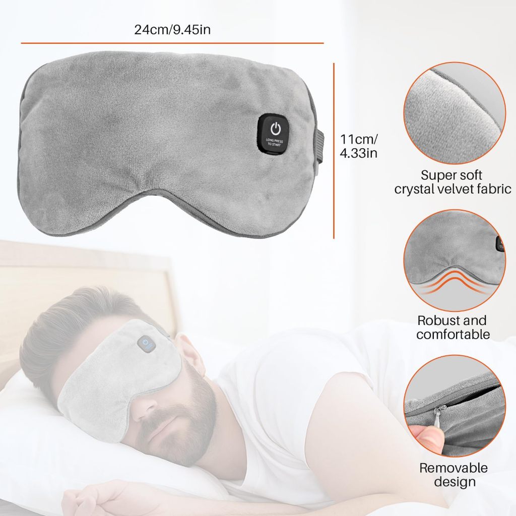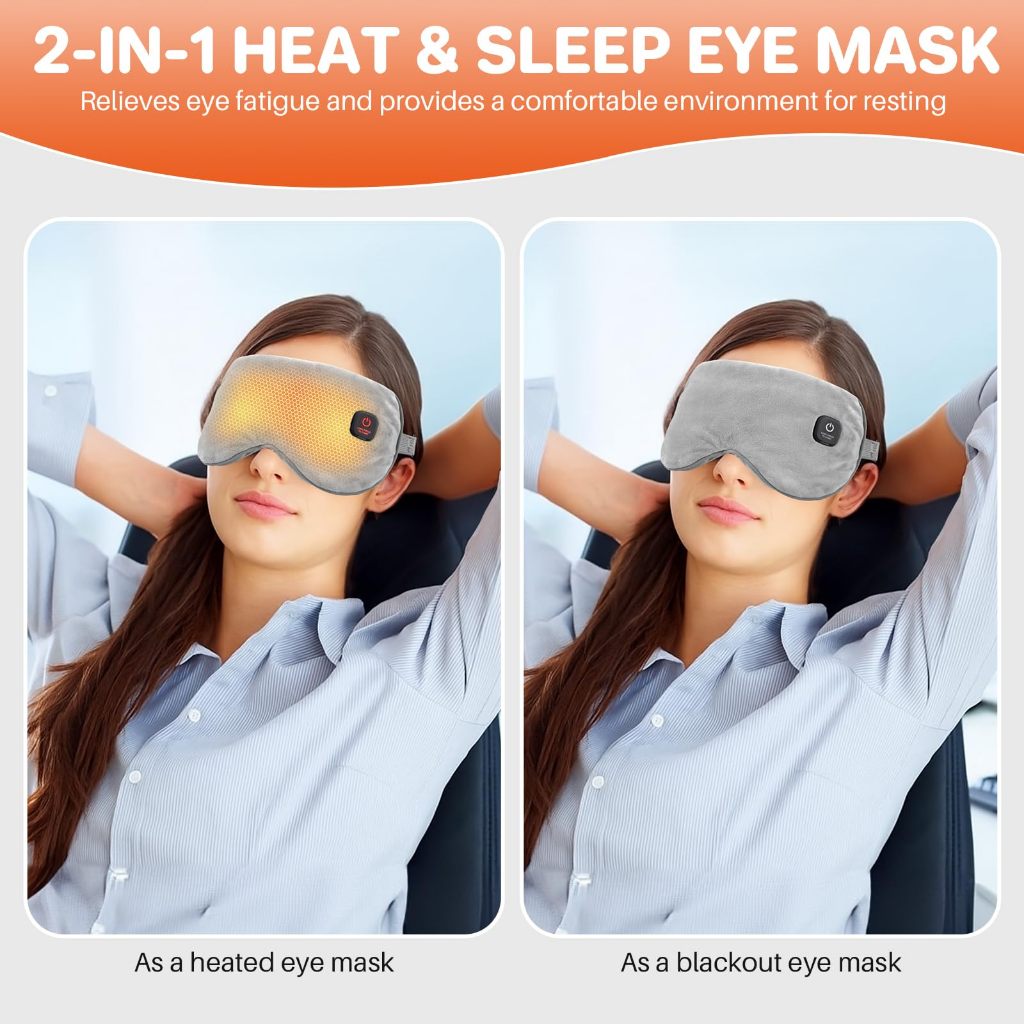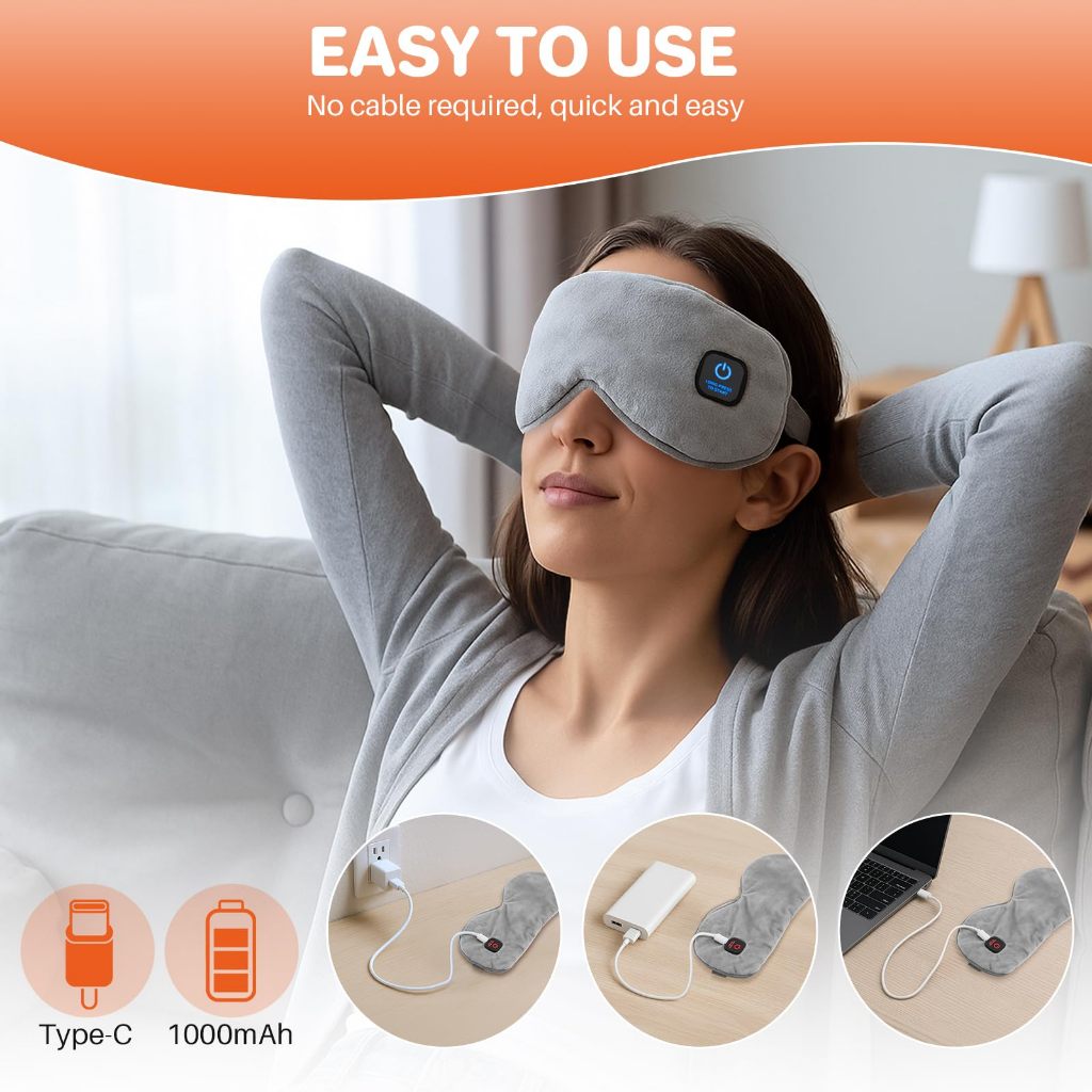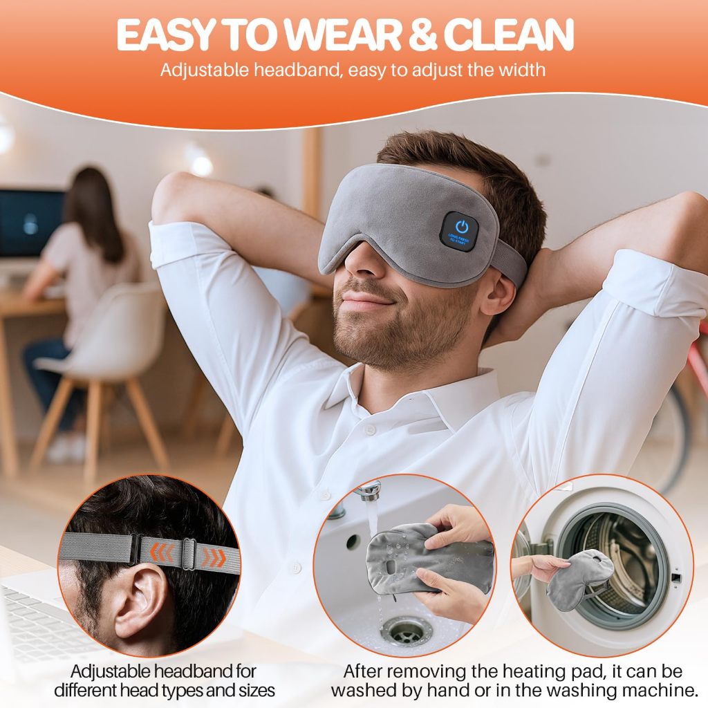 Mặt nạ mắt làm nóng, Máy nén mắt ấm áp không dây cho mắt khô, Viêm mắt, Chặn ánh sáng Mặt nạ mắt nhiệt cho nam nữ, Pin sạc 1000mAh và Vỏ có thể giặt được