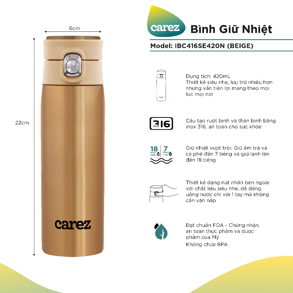 Bình Giữ Nhiệt Carez 420ml IBC416SE420N