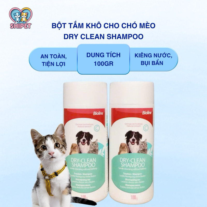 Bột tắm khô cho chó mèo Dry Clean Shampoo chai 100g, Bột khô cho chó mèo kiêng nước sạch bụi bẩn an toàn tiện lợi