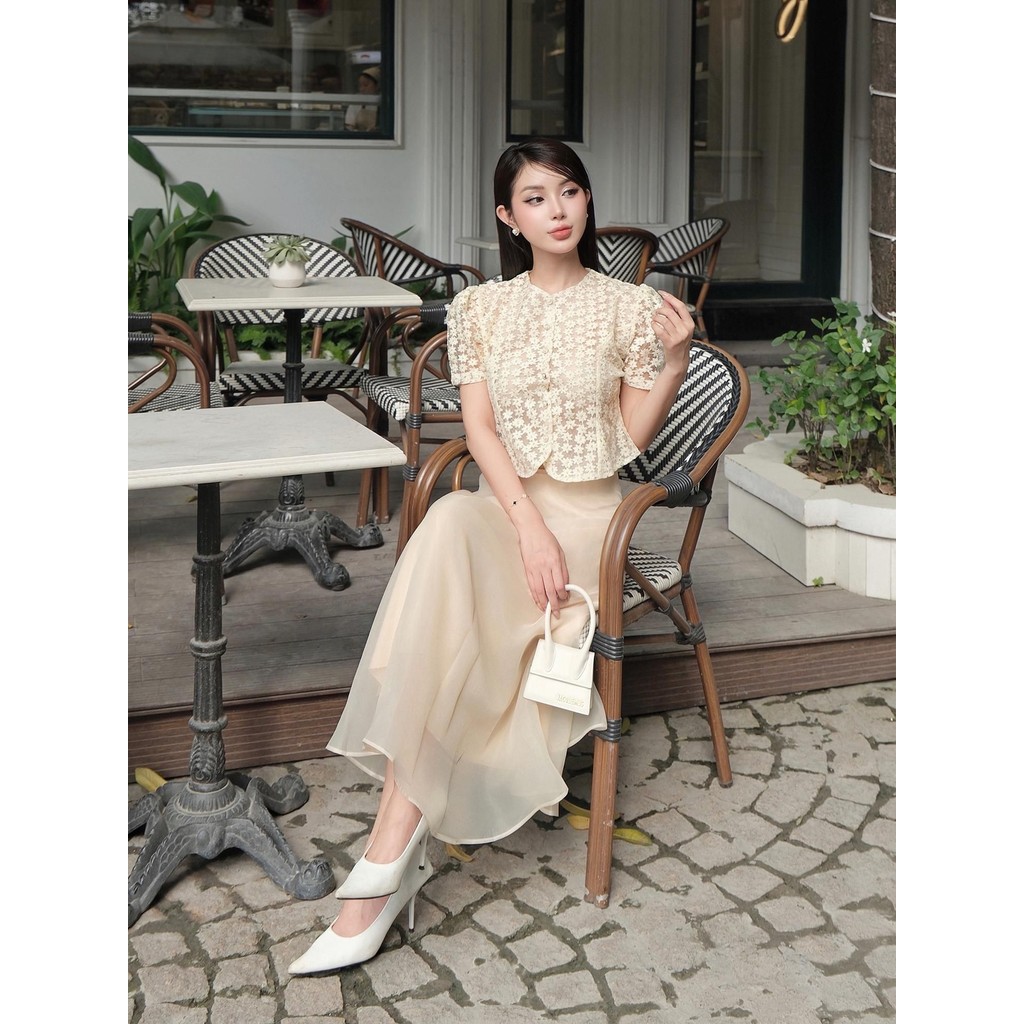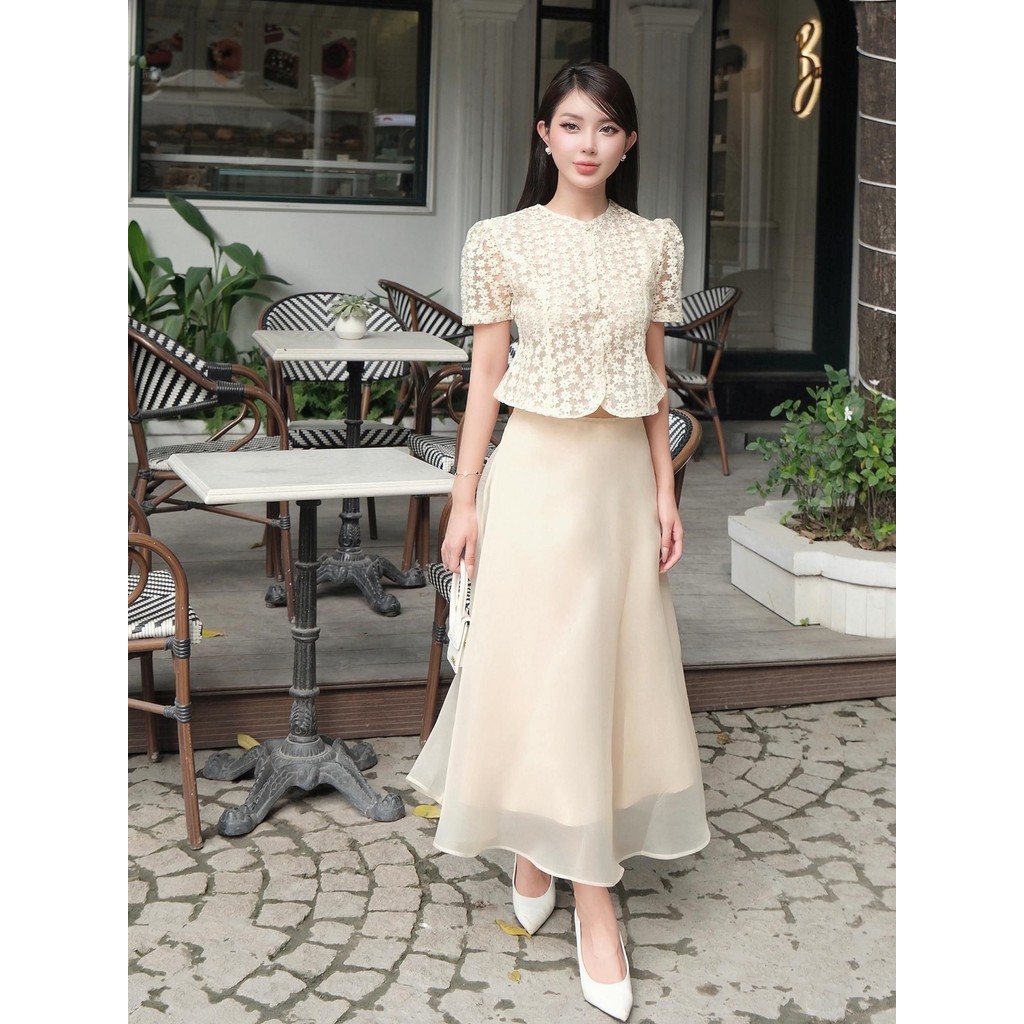 [MissChic x BBSTORE'S] Set Áo Crop Hoa Cúc Chân Váy Voan Xòe Chất Organza - K4270T