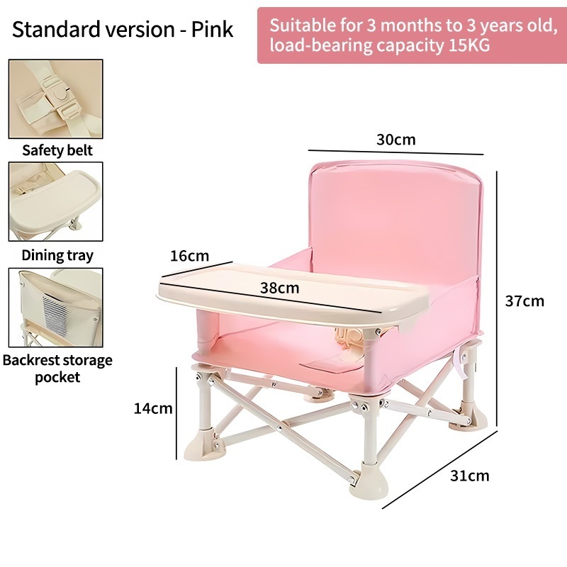Ghế Ăn Dặm Gấp Gọn Kiểu Dáng Hàn Quốc Siêu Nhẹ Cho Bé Có Đai Khóa An Toàn, Ghế Ăn Dặm Du Lịch