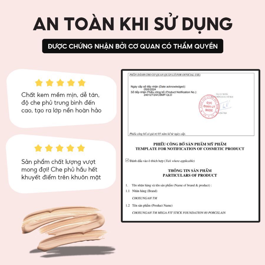 Kem Nền Thỏi Chosungah Porcelain Mega Fit Stick Foundation – Lớp Nền Mỏng Mịn, Căng Bóng