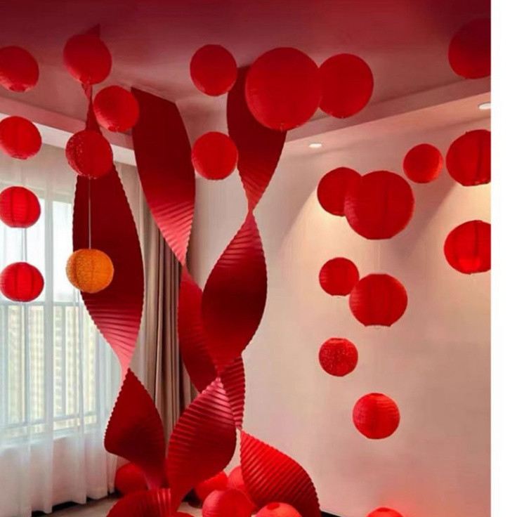 (ĐỎ RỰC) Tết Nguyên Đán Rực Rỡ Với Hoa Giấy Nhún Sáng Tạo, Đèn Lồng, Dải Giấy Xếp Ly Decor Tết Xinh