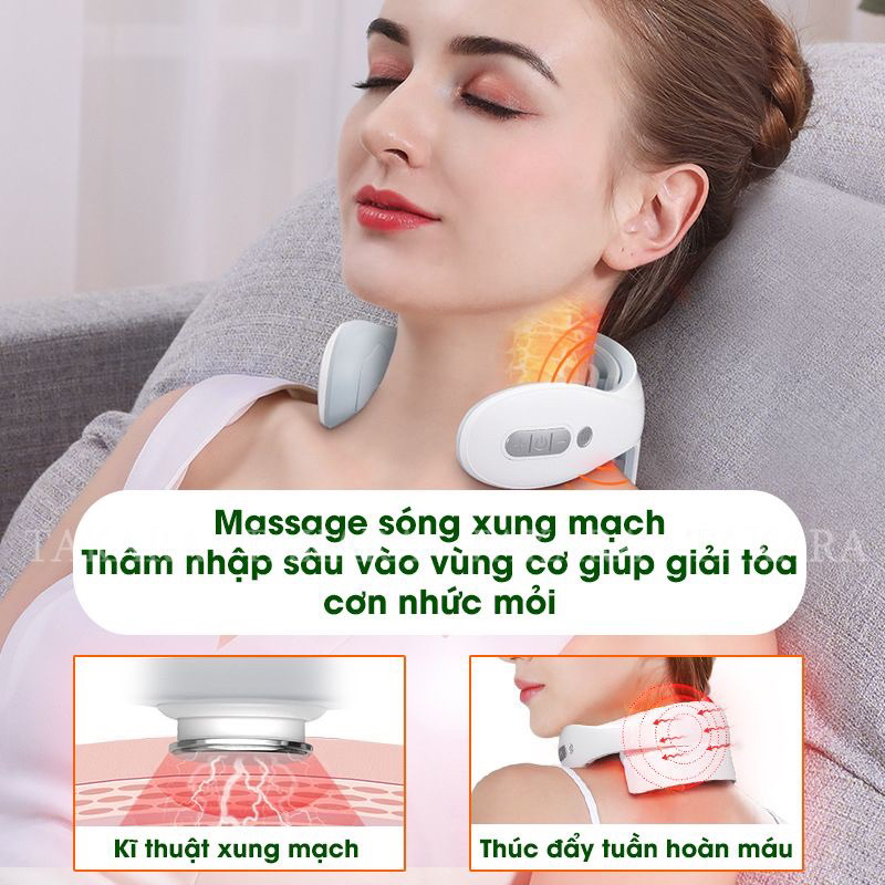 Máy Massage cổ vai gáy OKACHI Nhật Bản. Máy massage xung điện 4 đầu 5 đệm cao su với 8 thủ pháp massage như tay người.