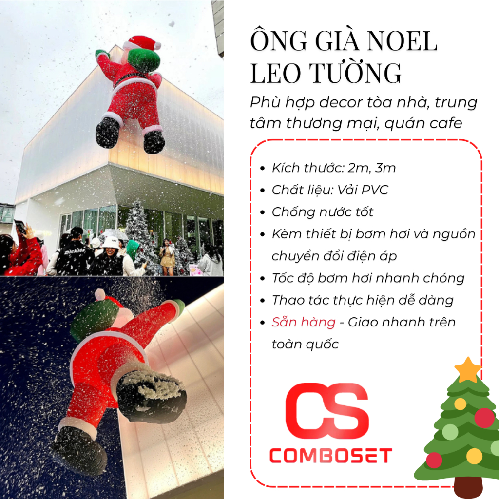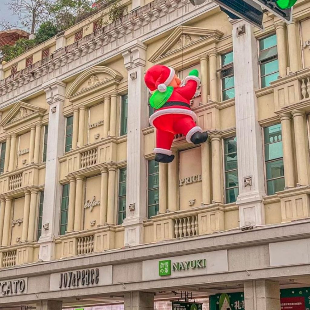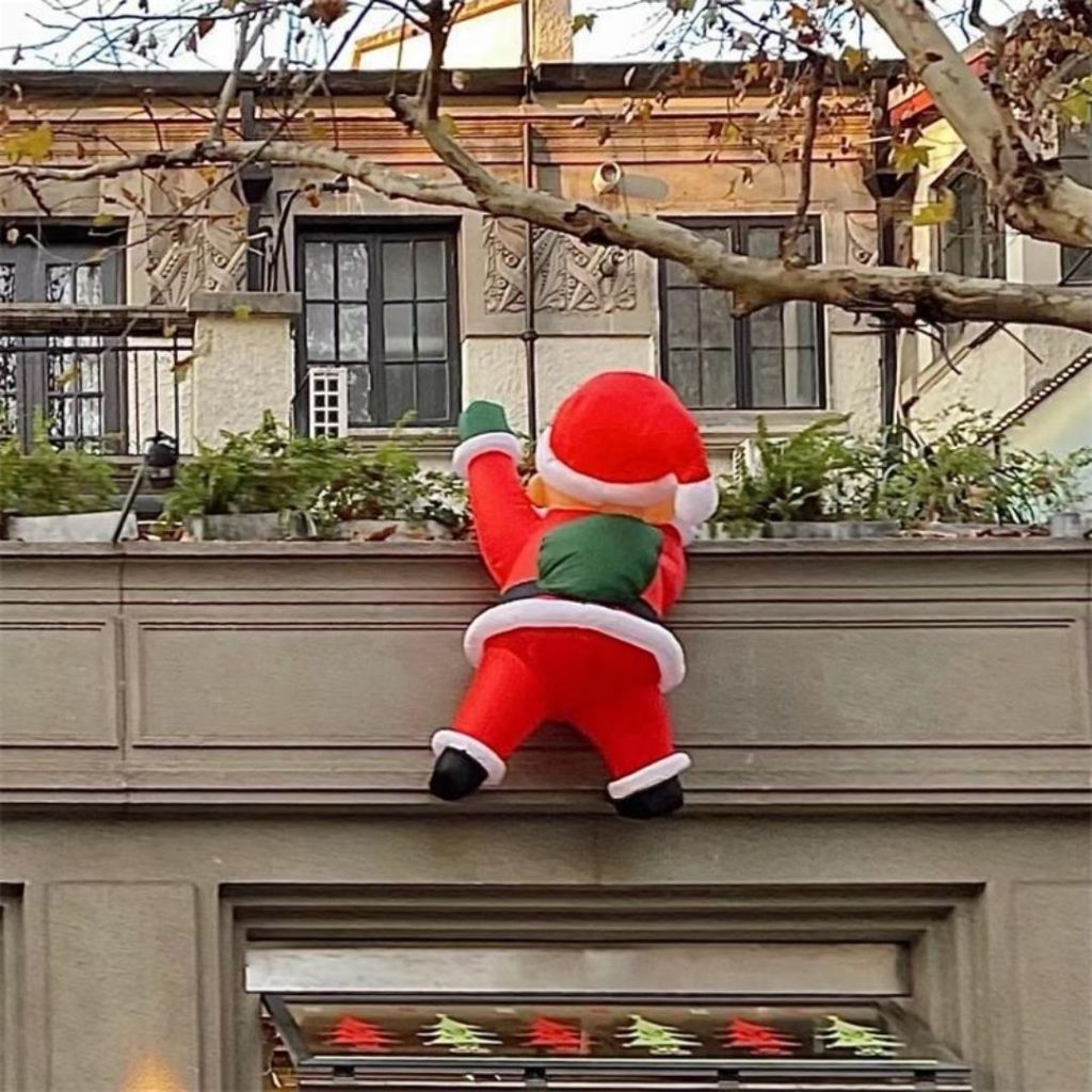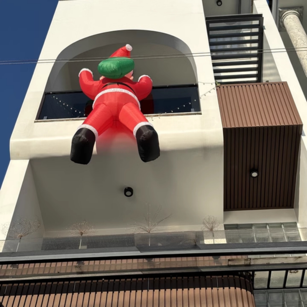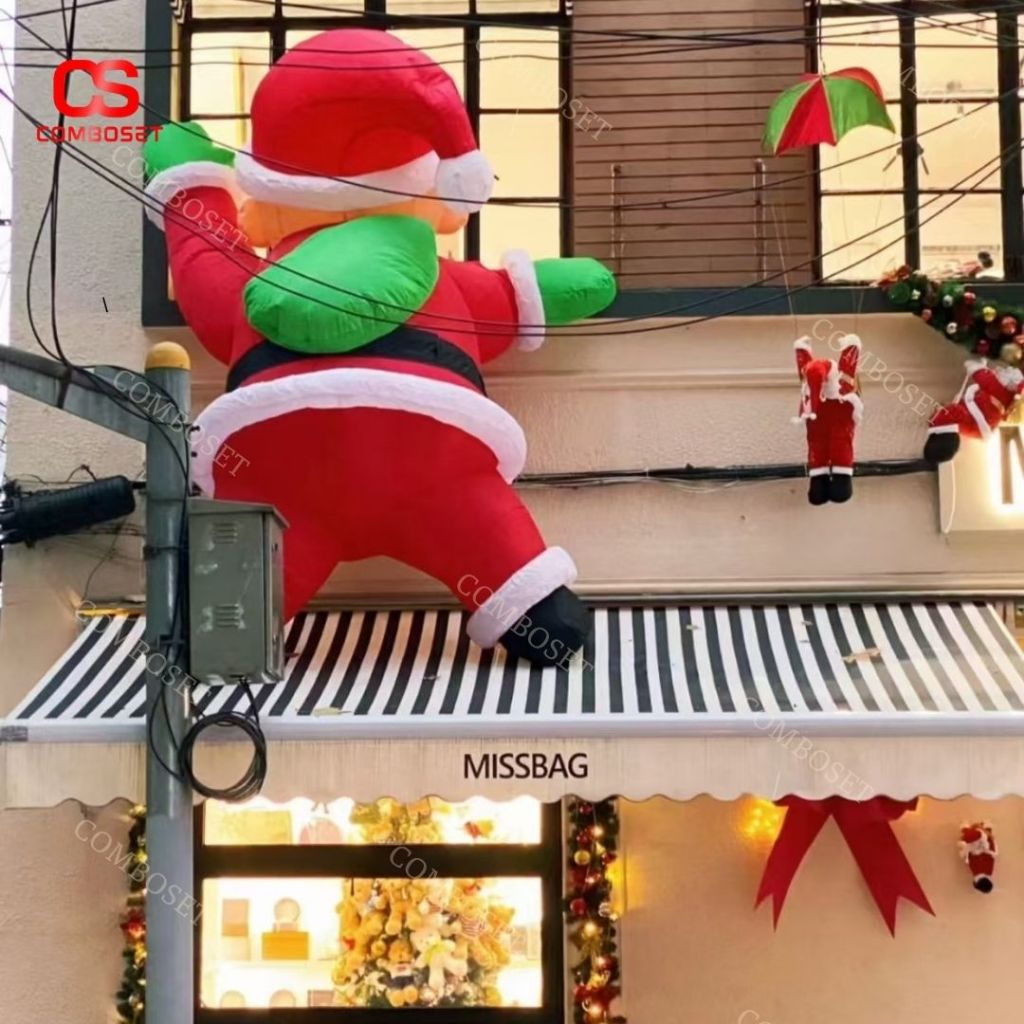 Rối Hơi Ông Già Noel Leo Tường Bằng Vải Dùng Trang Trí Trung Tâm Thương Mại, Khách Sạn, Quán Cafe