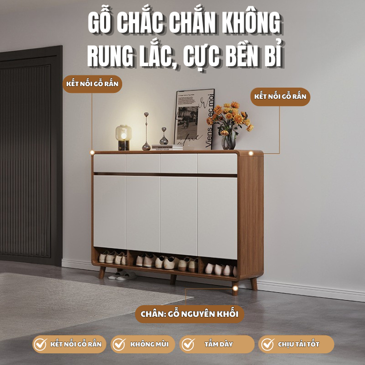 Tủ giày gỗ thông minh, bo tròn 4 góc an toàn, ngăn kéo chống bụi Harmony tháo lắp dễ dàng tự do mở rộng không gian