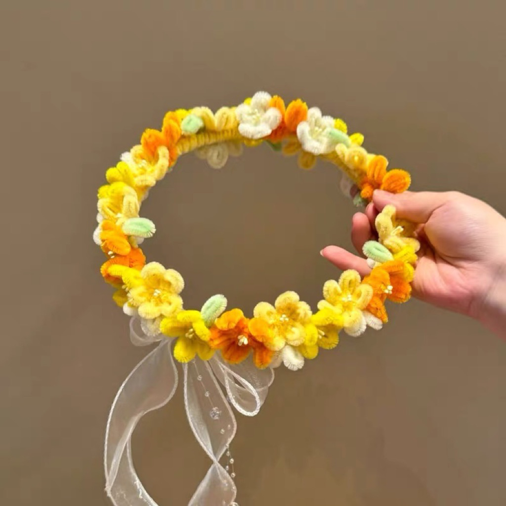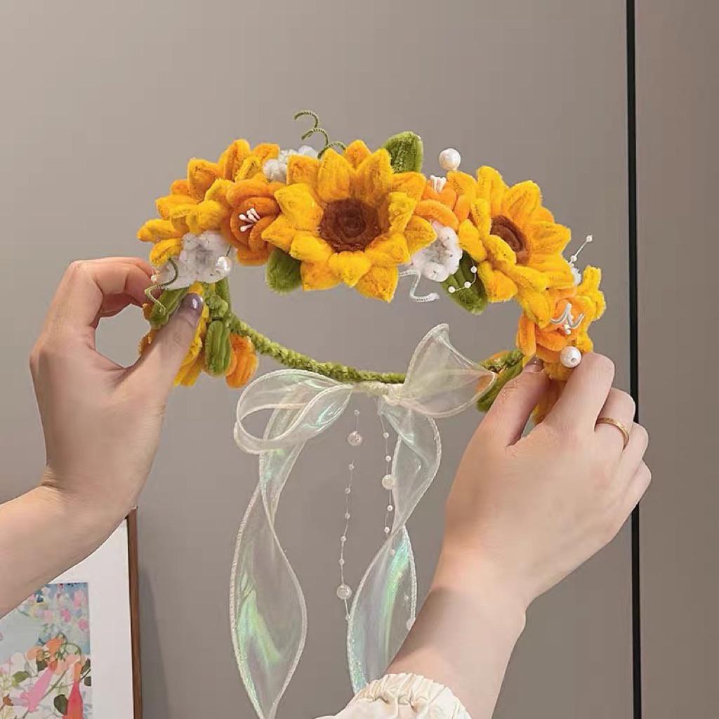 Vòng hoa kẽm nhung đội đầu, Vòng hoa kẽm nhung phụ kiện chụp ảnh, set kẽm làm vòng hoa đôin đầu Yagarden
