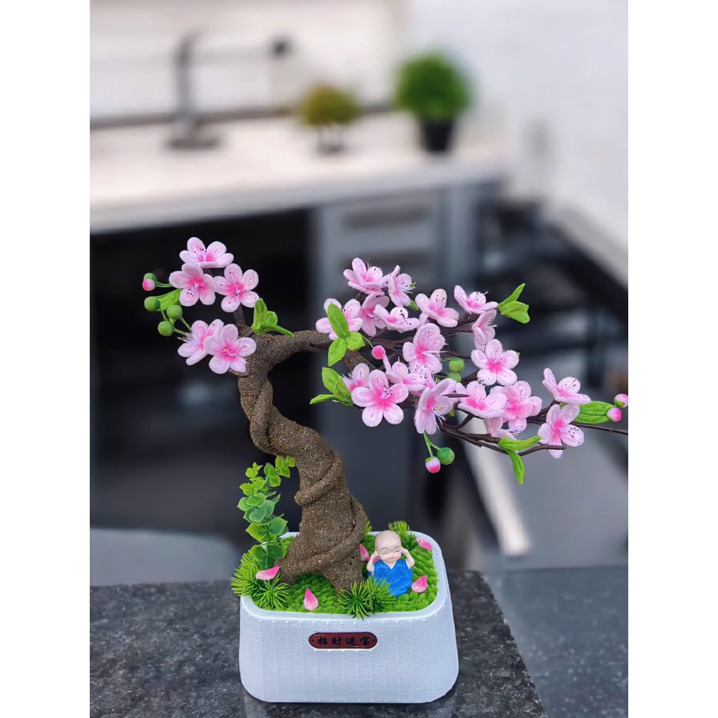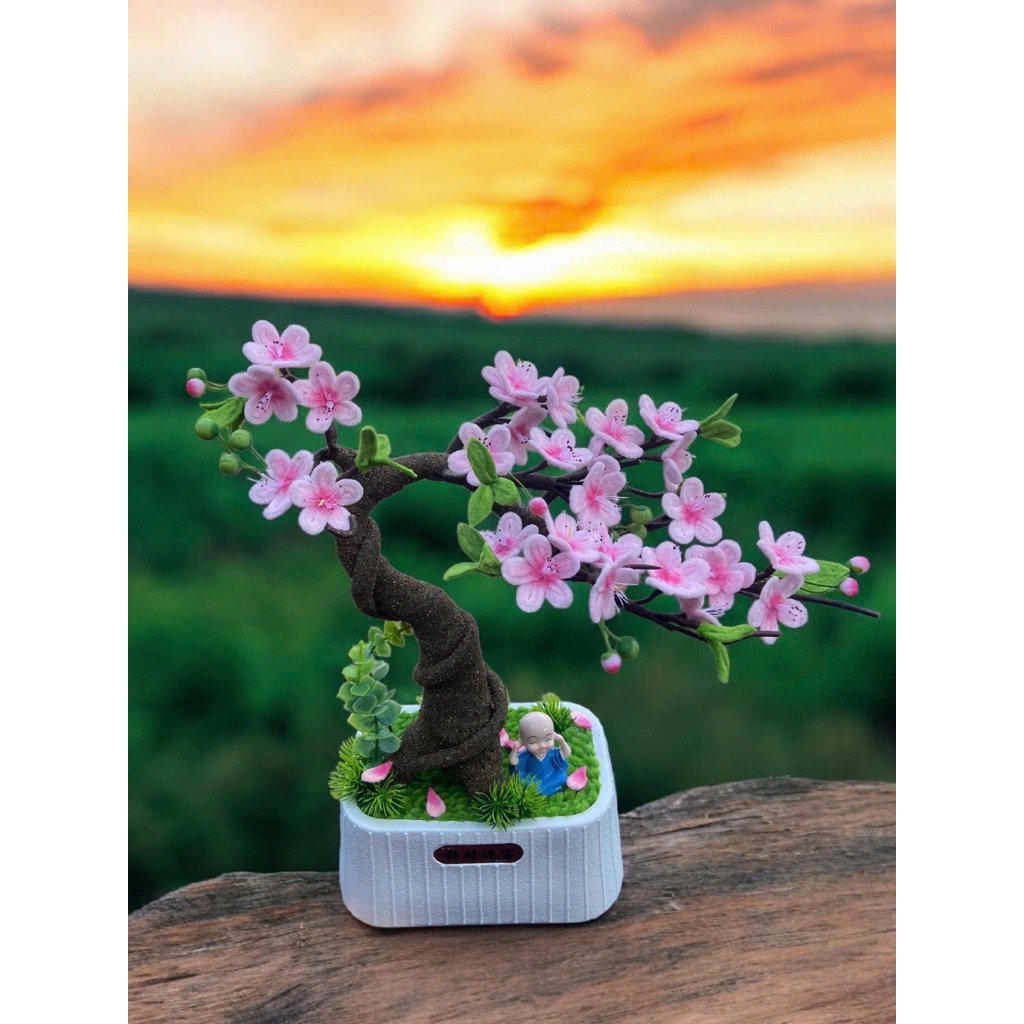 [lam san]Cây hoa đào phai ép cánh thân bonsai dáng huyền trưng tết, Cây hoa ép cánh đào phai quà tặng dịp lễ Yagarden