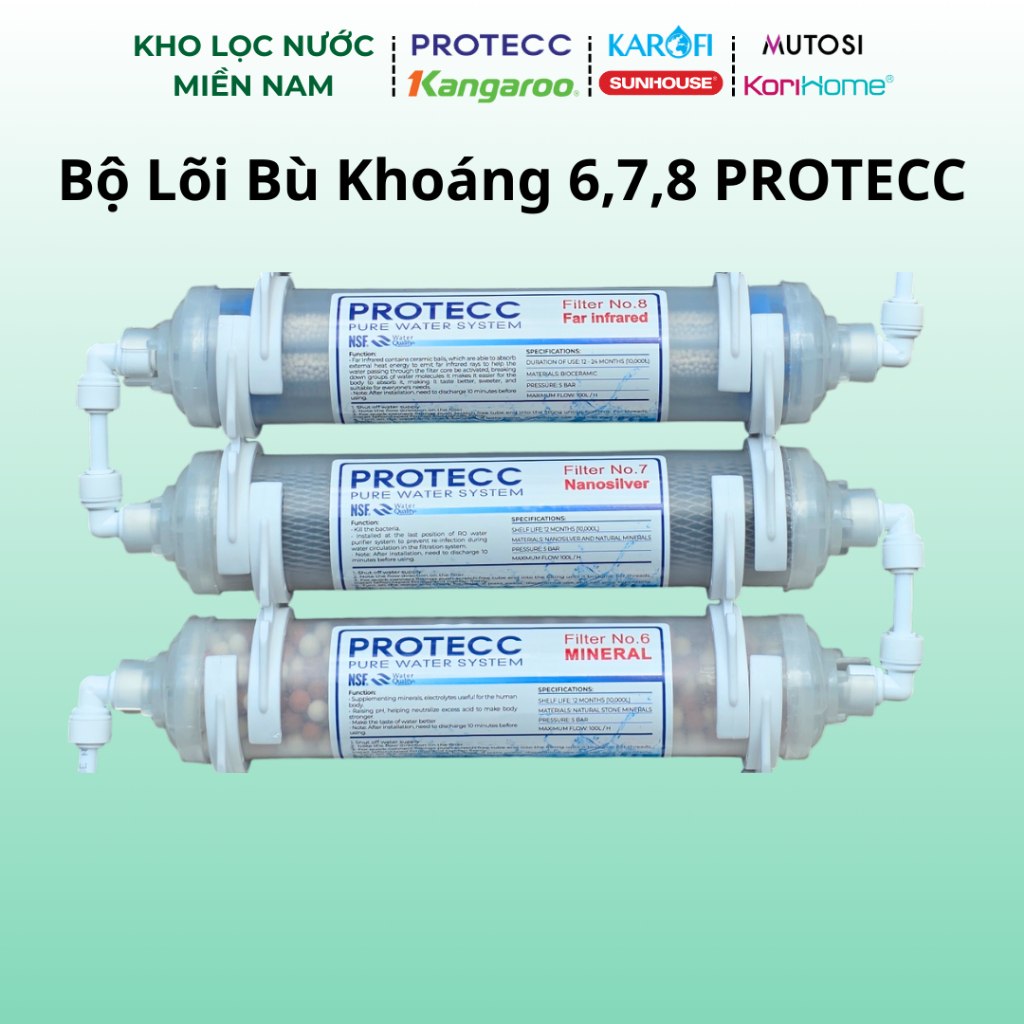 Bộ Lõi Bù Khoáng 6,7,8 PROTECC - Lõi Đá Khoáng, Nano Silver, Far Infared ( Oxi ) - Thay Cho Các Dòng Máy Lọc Nước