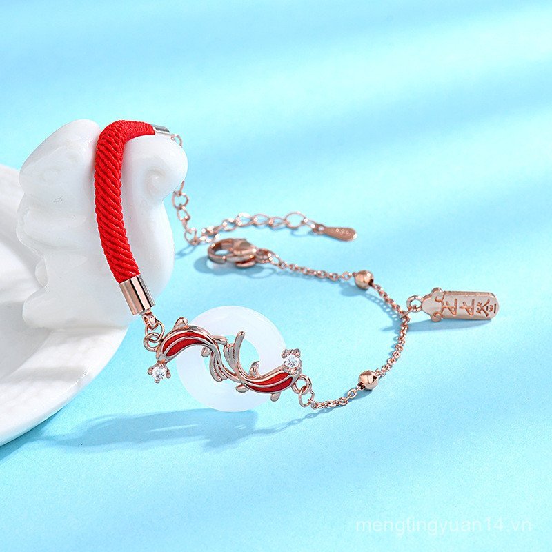 Vòng tay nữ đẹp với ngọc an toàn và hạt chuyển màu, dây đỏ - Quà tặng sinh nhật ý nghĩa