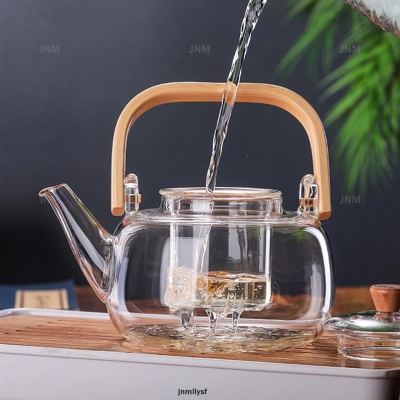 Ấm pha trà thuỷ tinh chịu nhiệt tay gỗ 1000ml có thể đun trên bế ga bếp hồng ngoại