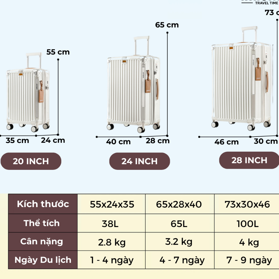 VALI DOANH NHÂN Vali Khóa kéo bảo mật TSA An Toàn Kéo Nhựa PC Cao Cấp Du Lịch size 20/24/28 inch