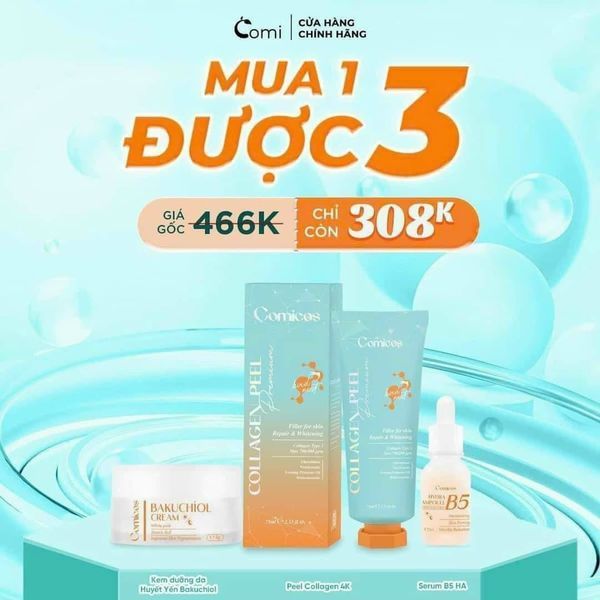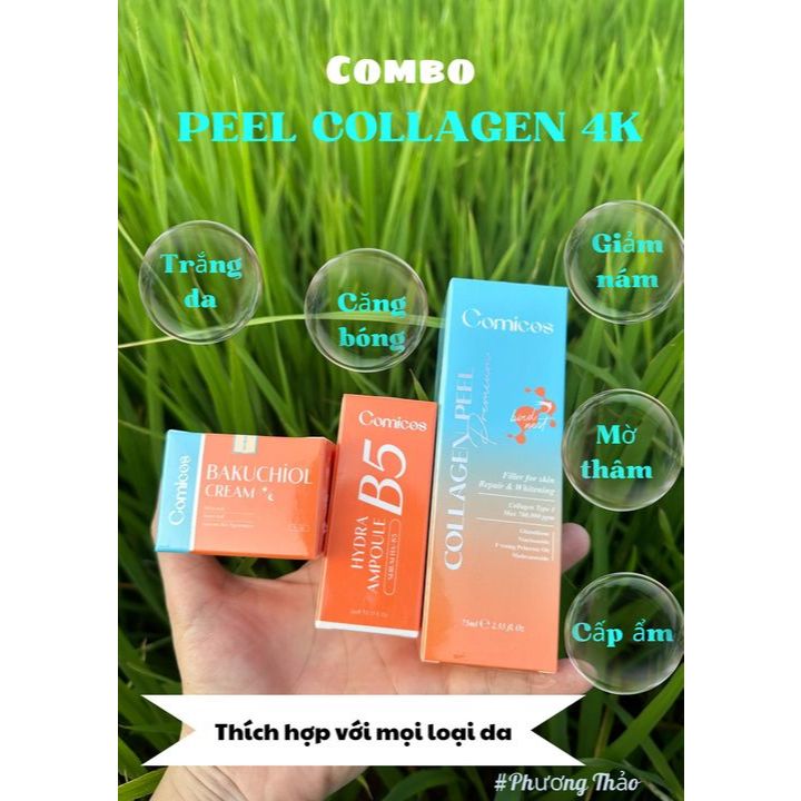 Combo skincare da mặt Peel Collagen 4K + Serum B5 HA + Kem Face Huyết Yến Bakuchiol