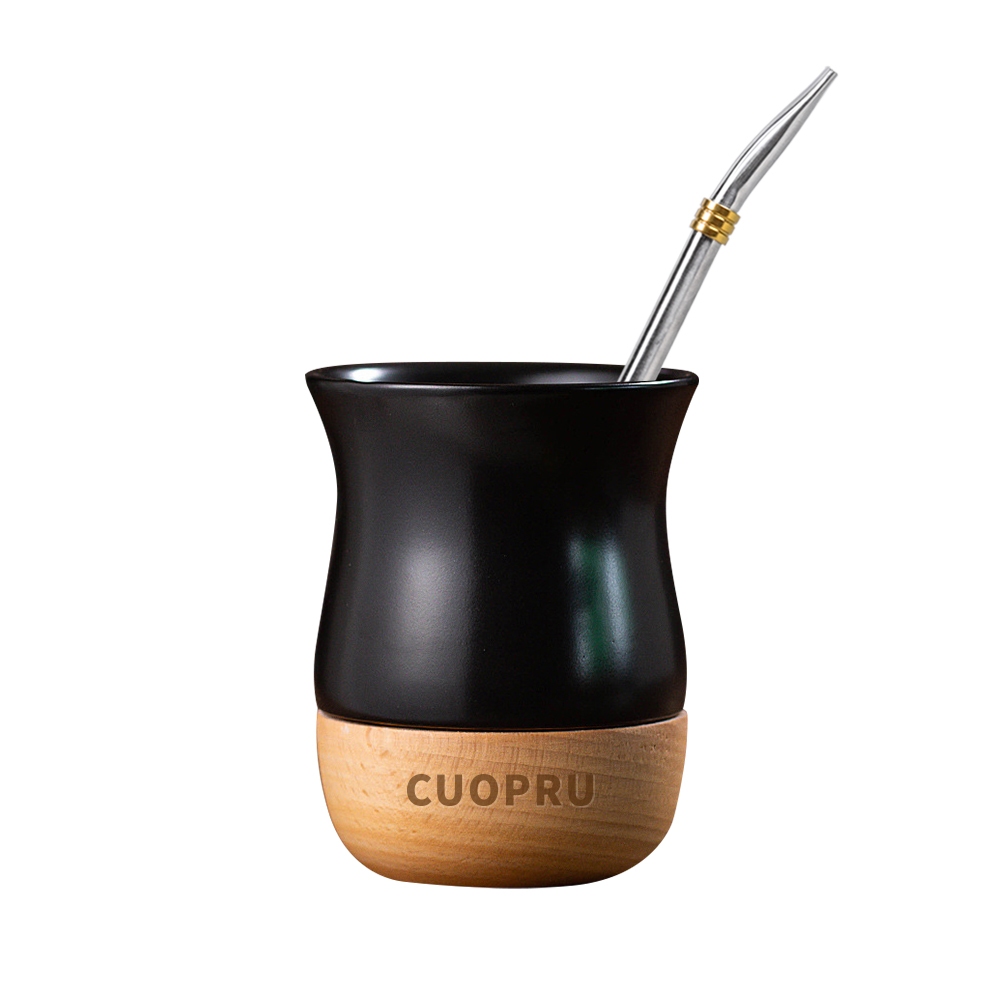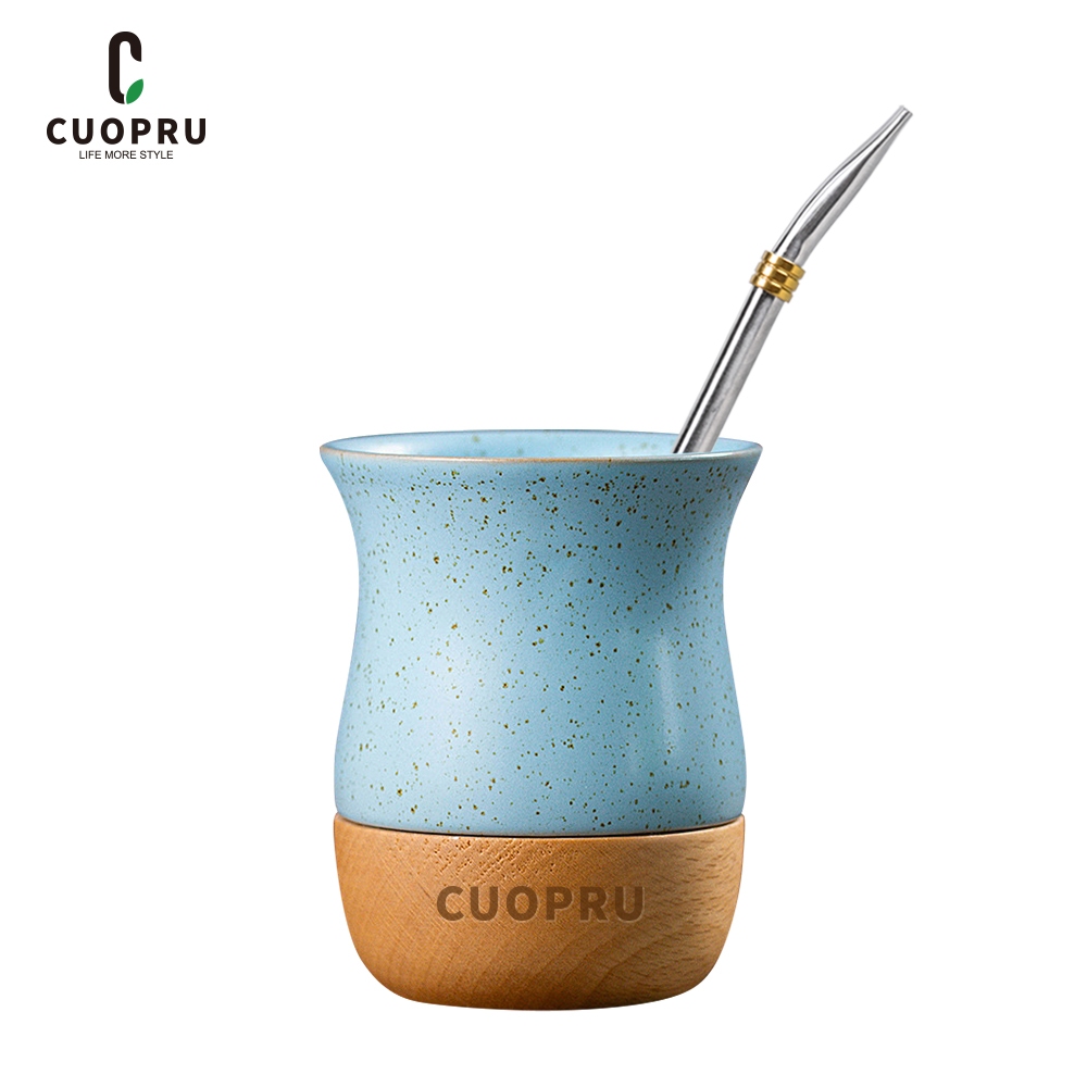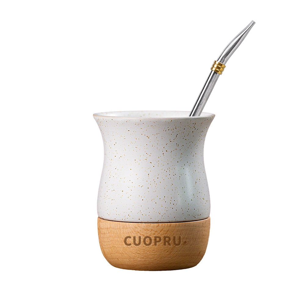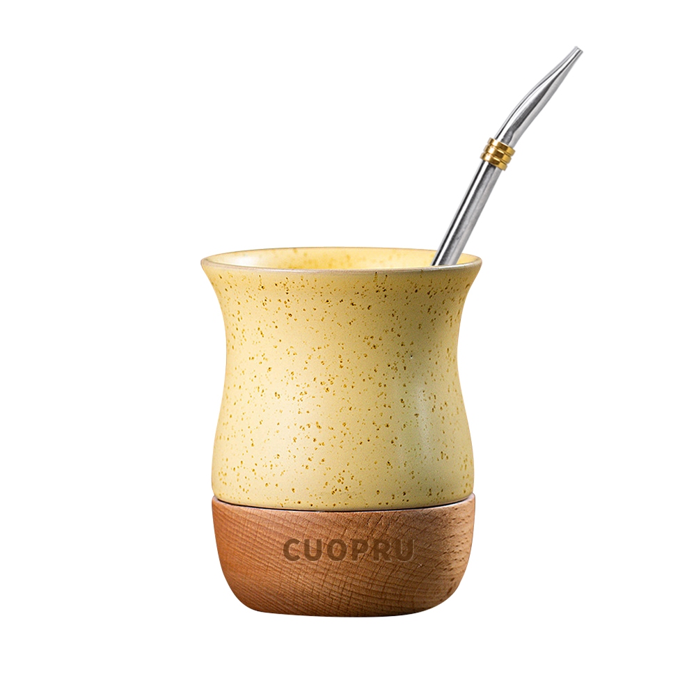 Cốc trà gốm sứ bằng gỗ, đốm gốm màu lúa mì, khay gỗ kết cấu tự nhiên nguyên chất
