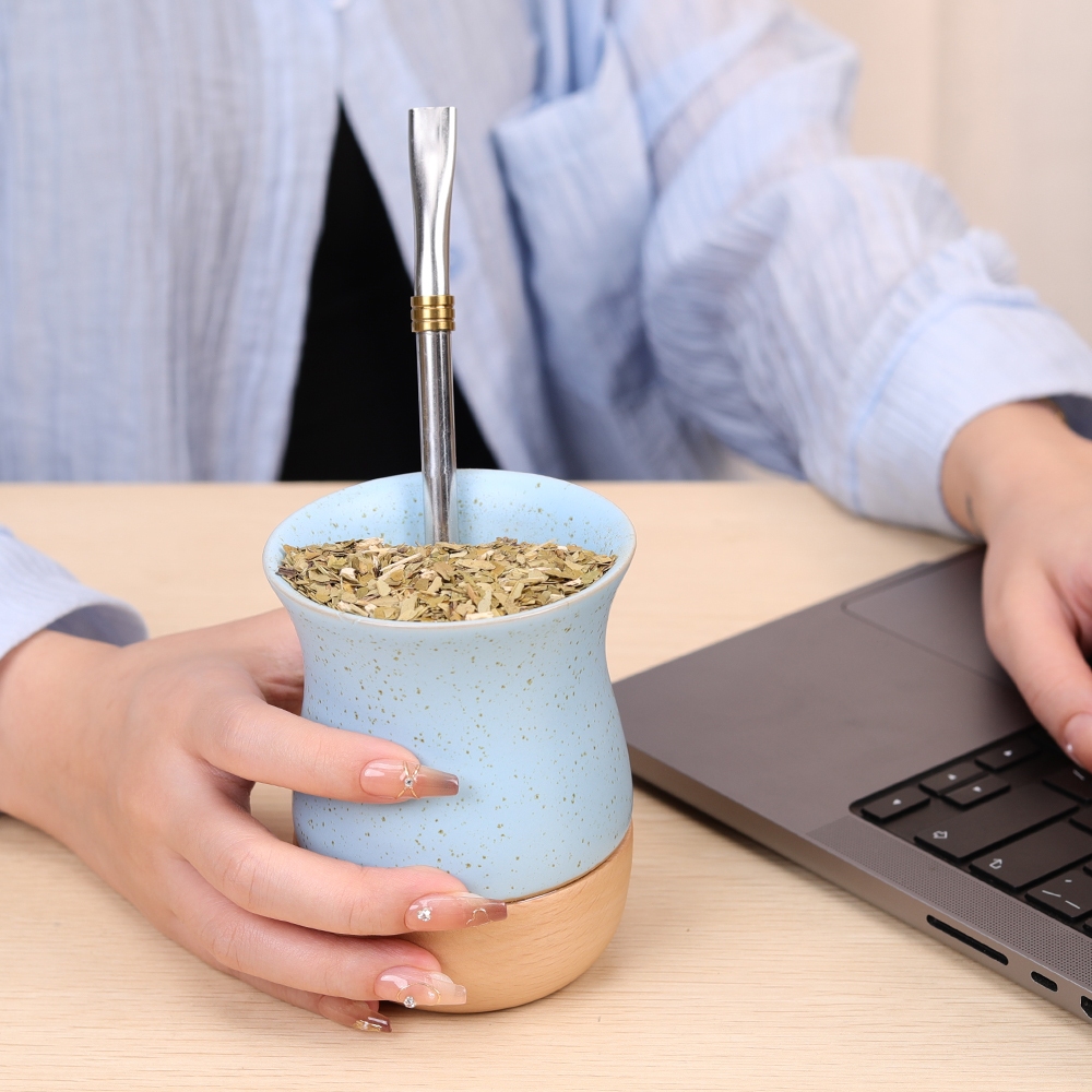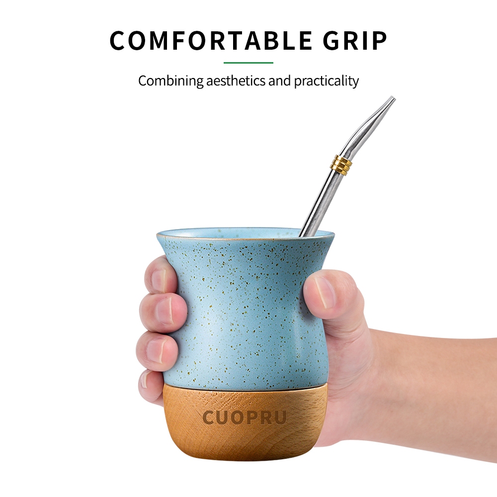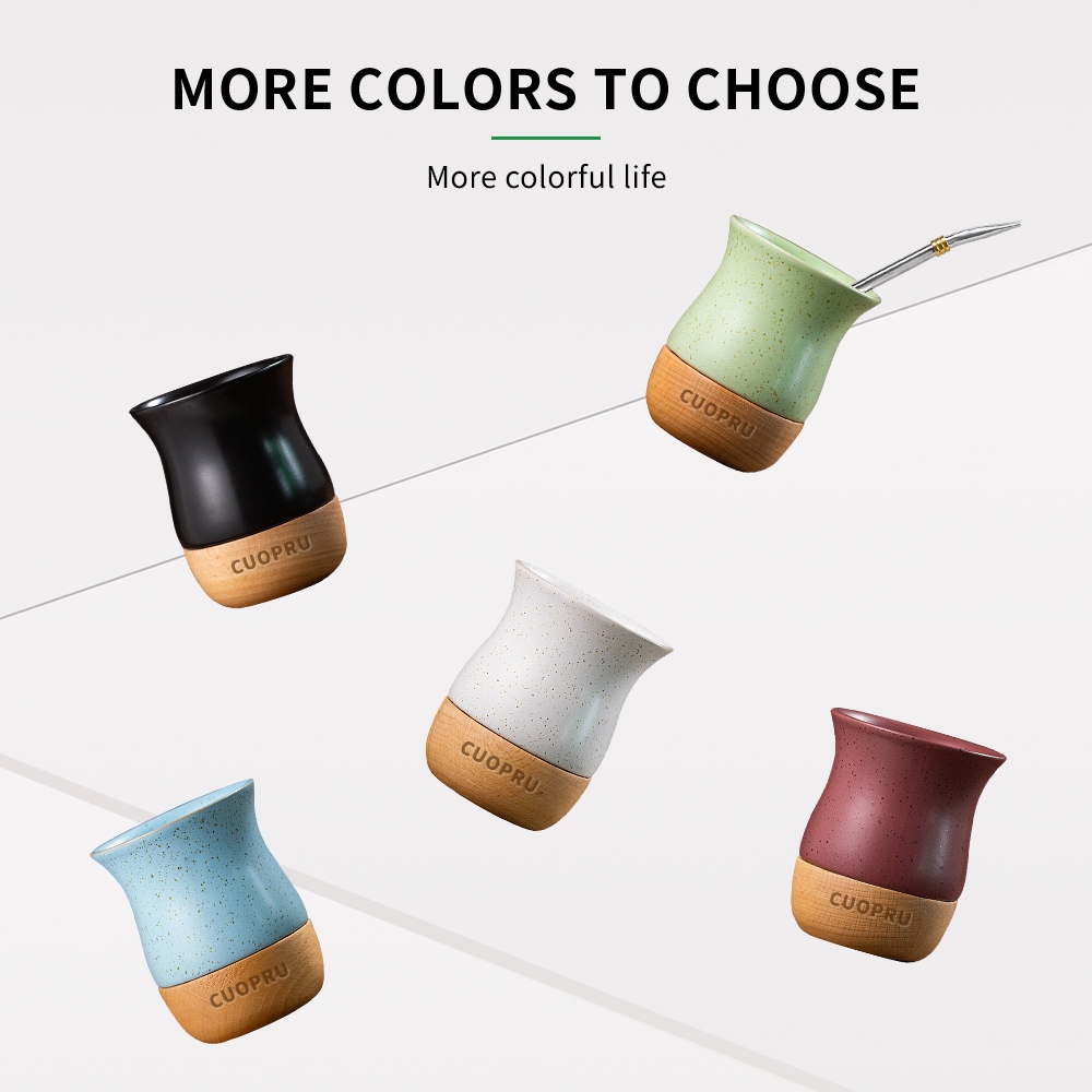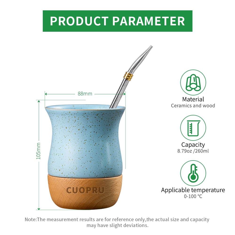 Cốc trà gốm sứ bằng gỗ, đốm gốm màu lúa mì, khay gỗ kết cấu tự nhiên nguyên chất