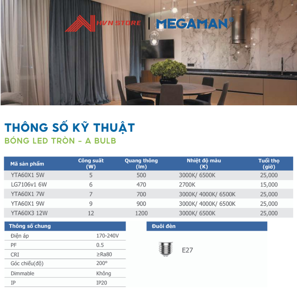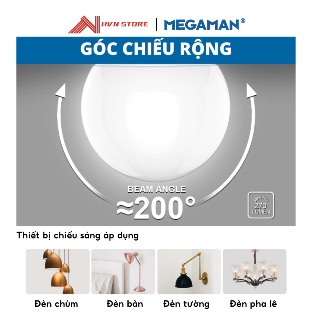 Bóng Đèn MEGAMAN LED Bulb Tròn Tiết Kiệm Điện Công Suất 5W 7W 9W Ánh Sáng Trắng