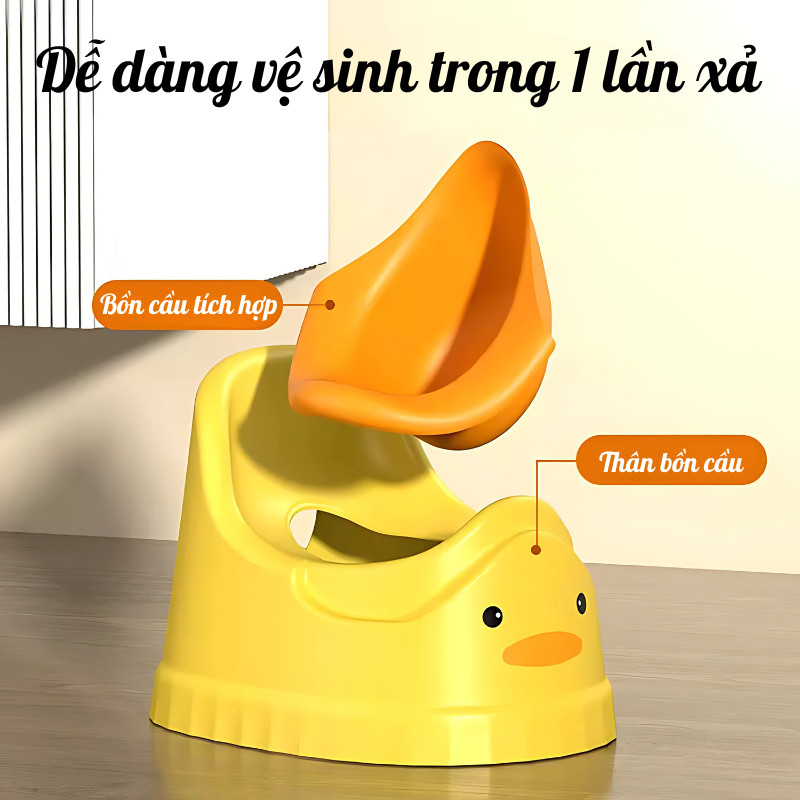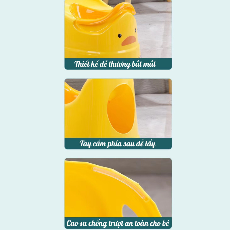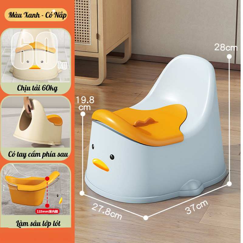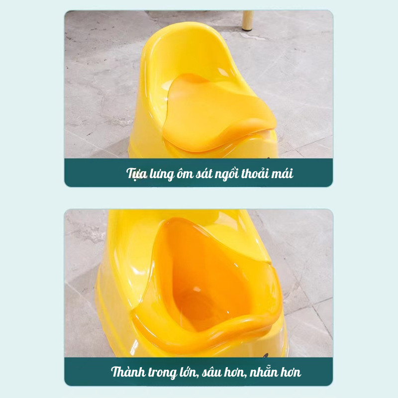 Bô Tập Đi Vệ Sinh Trẻ Em Hình Vịt, Chống Tràn, Có Tựa Lưng, Nhựa PP Cao Cấp