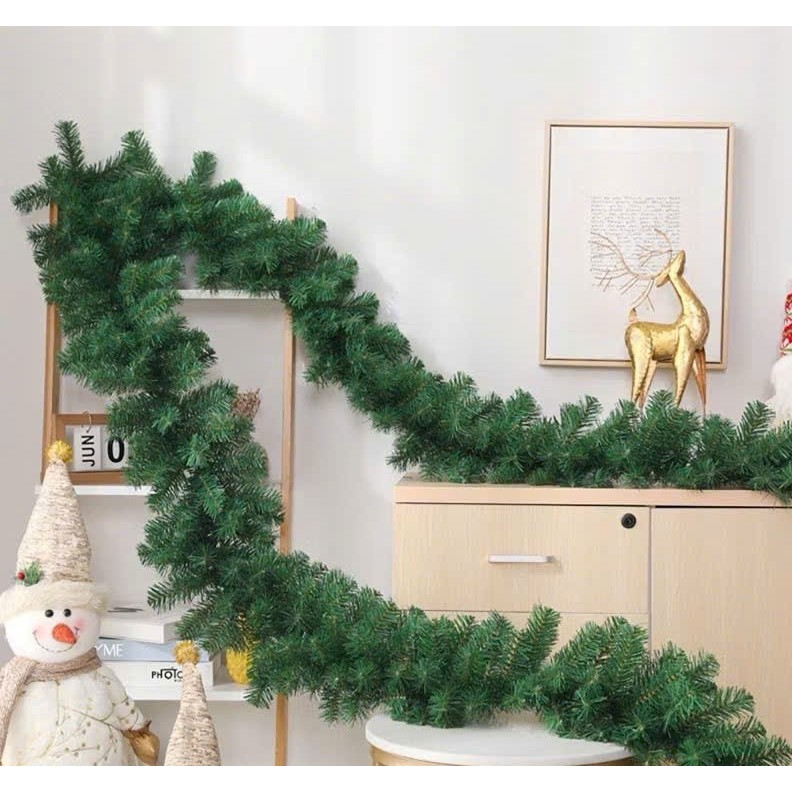 Dây thông xanh trơn, dây thông 3 loại lá 2.7M trang trí giáng sinh noel, làm cây thông giả, vòng nguyệt quế