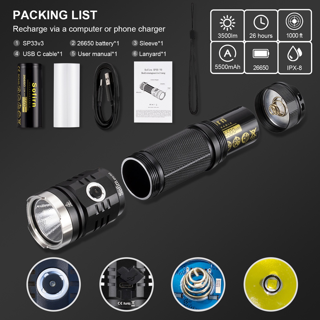 Đèn Pin Sofirn SP33 V3.0 XHP50.2 3500lm Sạc Được