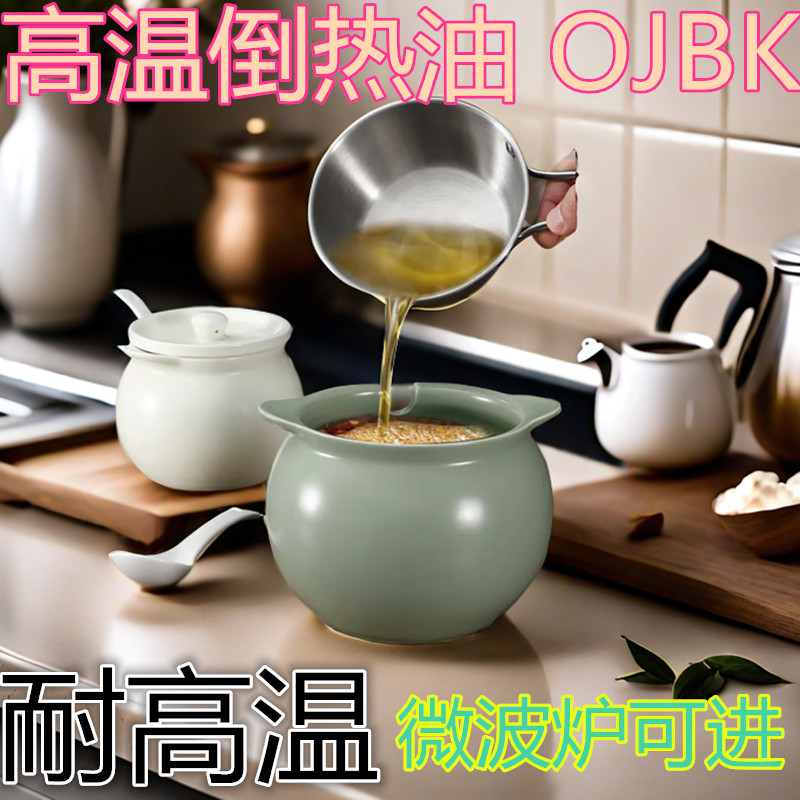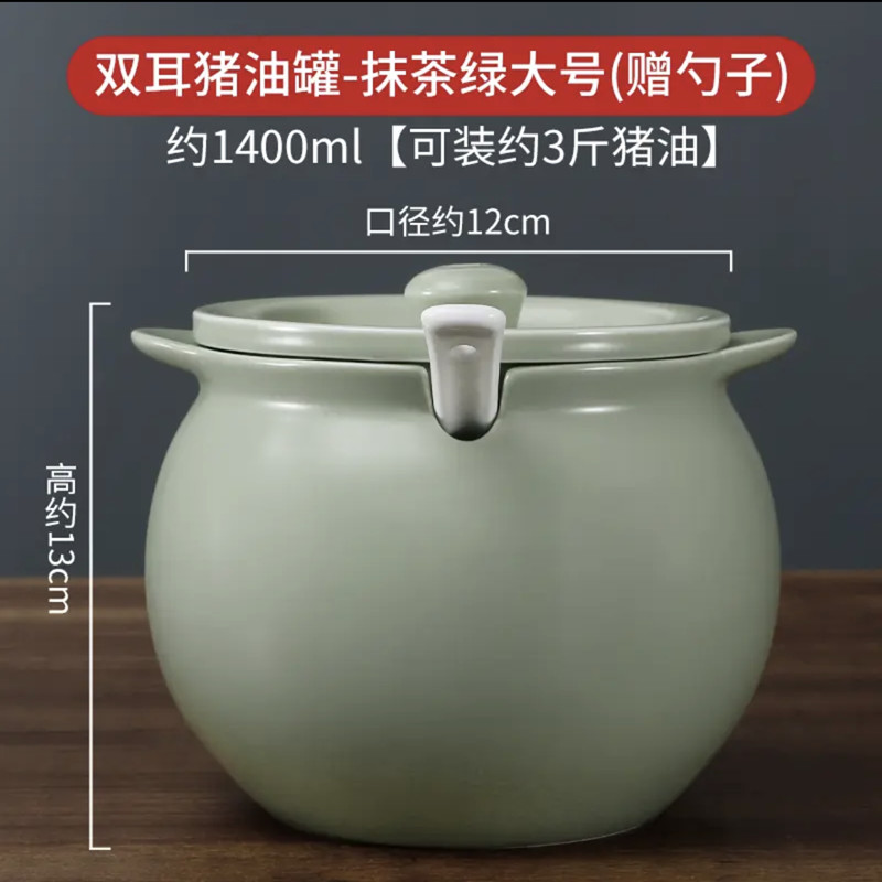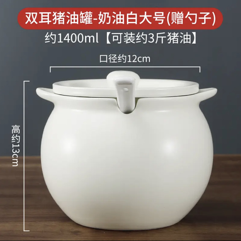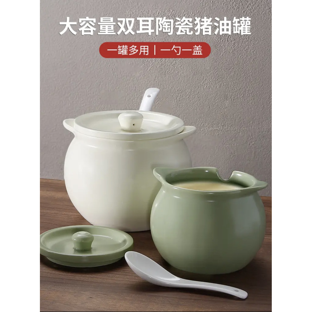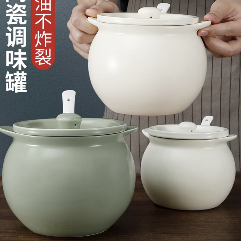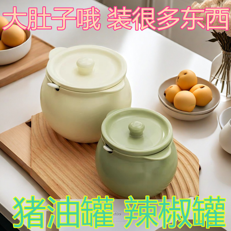 Hũ Đựng Mỡ Lợn Gốm Sứ Gia Dụng Chịu Nhiệt Độ Cao Có Nắp Đậy, Đựng Dầu Thịt, Dầu Ớt, Hũ Đựng Dầu, Thìa