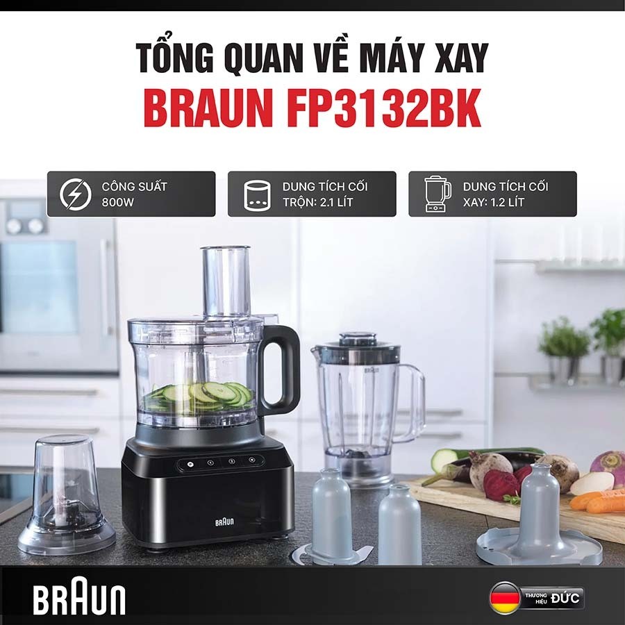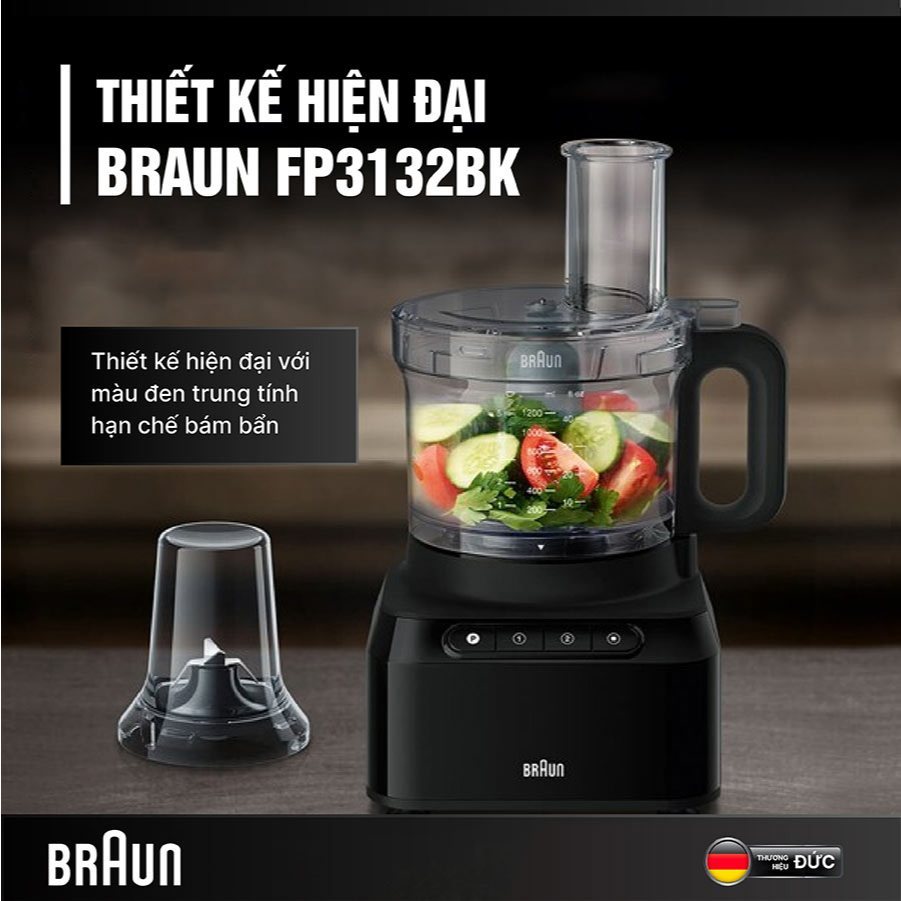 Máy Xay Đa Năng Braun FP3132BK – Công Suất 800W – Nhựa Cao Cấp Không Chứa BPA – FEM