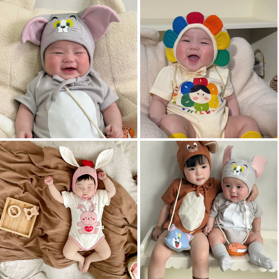 Body chip bodysuit cộc tay in hình dễ thương cho bé trai, bé gái, bé sơ sinh