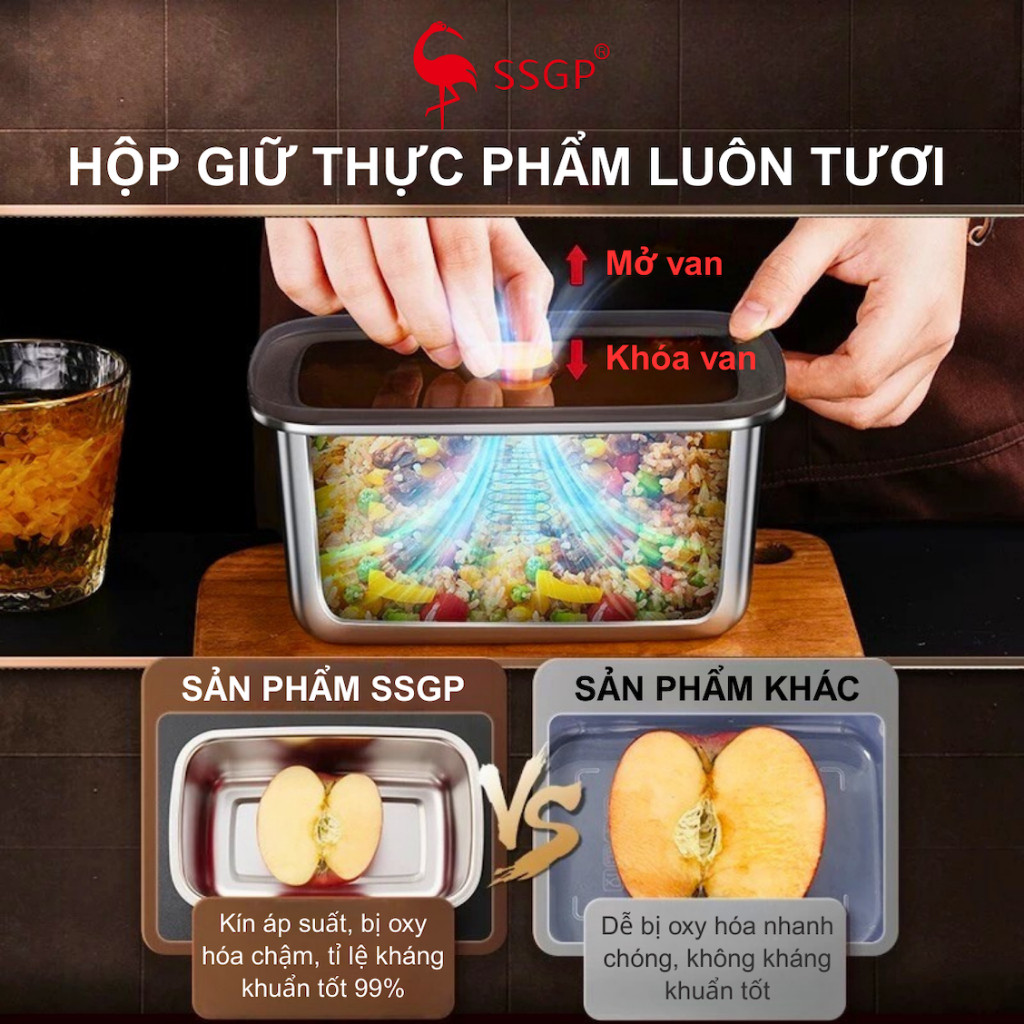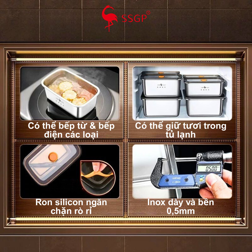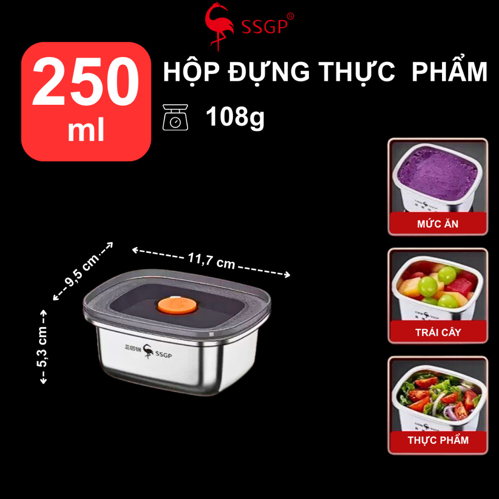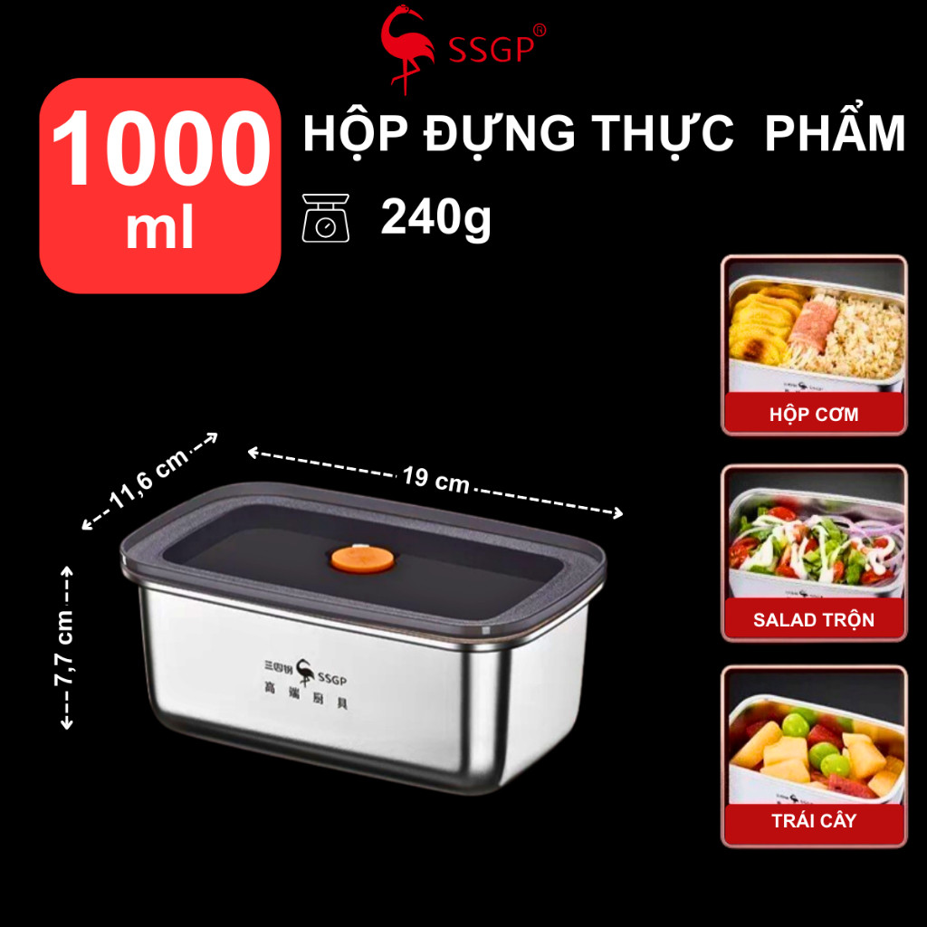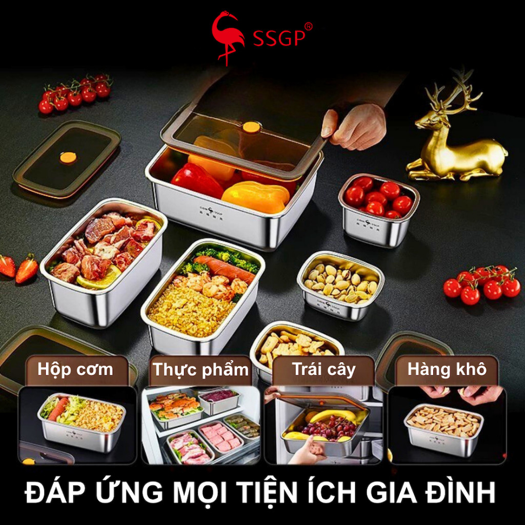 Hộp inox đựng thực phẩm 316L Munich hộp inox 304 có nắp đậy cao cấp SSGP Hộp đựng thực phẩm inox