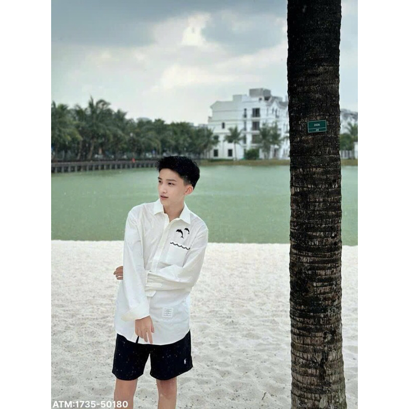 Siêu phẩm sơ mi thom thêu hoạ tiết cá heo cực xịn