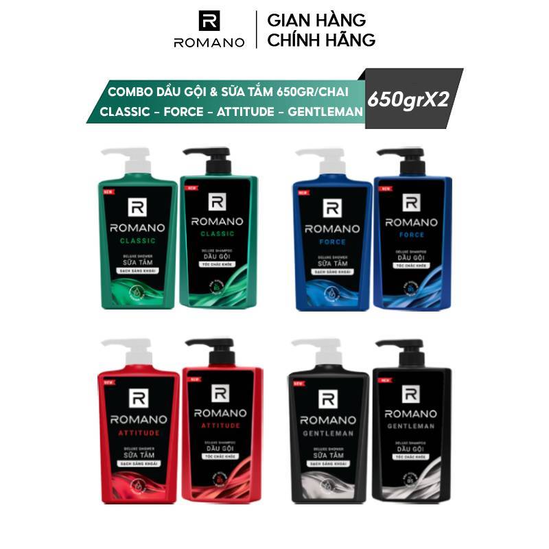 [Combo Toàn diện 2026] Combo Dầu gội nam và sữa tắm nam cao cấp Romano 650g/chai
