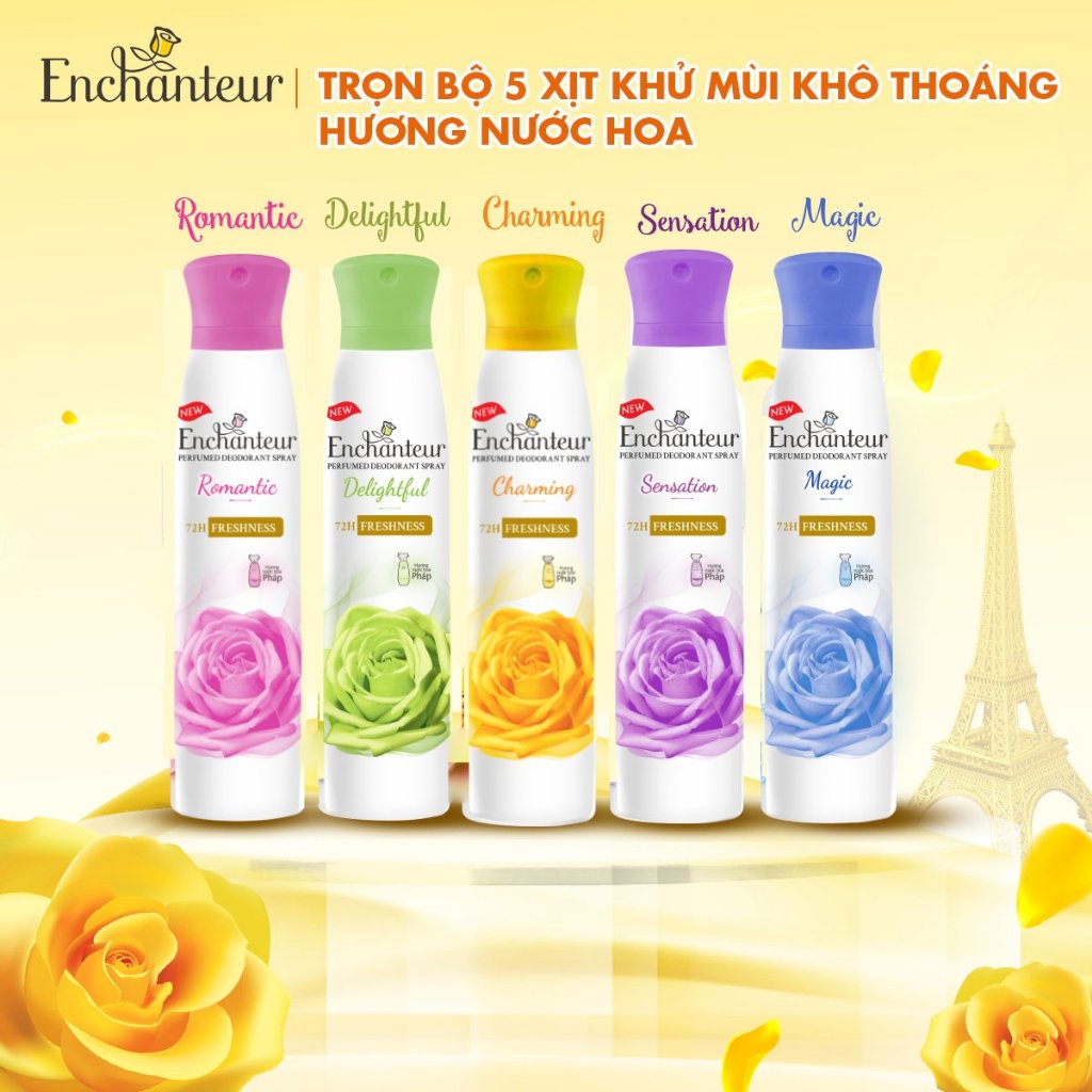 Combo 2 Xịt khử mùi Enchanteur khô thoáng 72 giờ, cảm giác tươi mát sảng khoái lâu dài 150ml