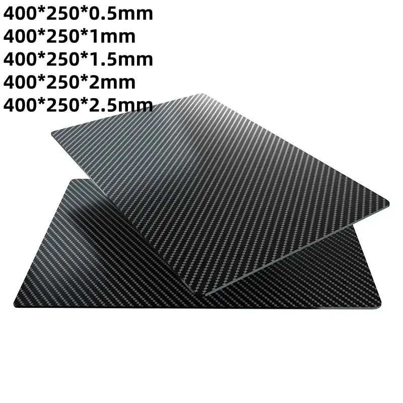 400 * 250 * 0.5 / 1 / 1.5 / 2 / 2.5mm Bảng sợi carbon 3K Twill bóng Twill Tấm sợi carbon mờ-1 Cái