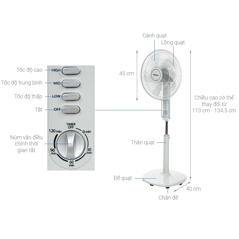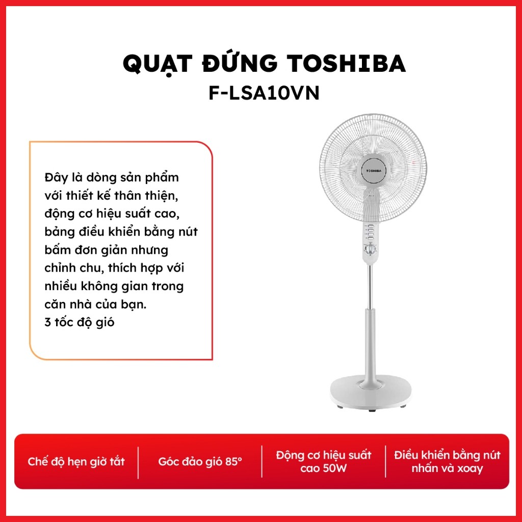 Quạt đứng Toshiba F-LSA10VN - Công suất 50W - Bảo hành chính hãng 12 tháng