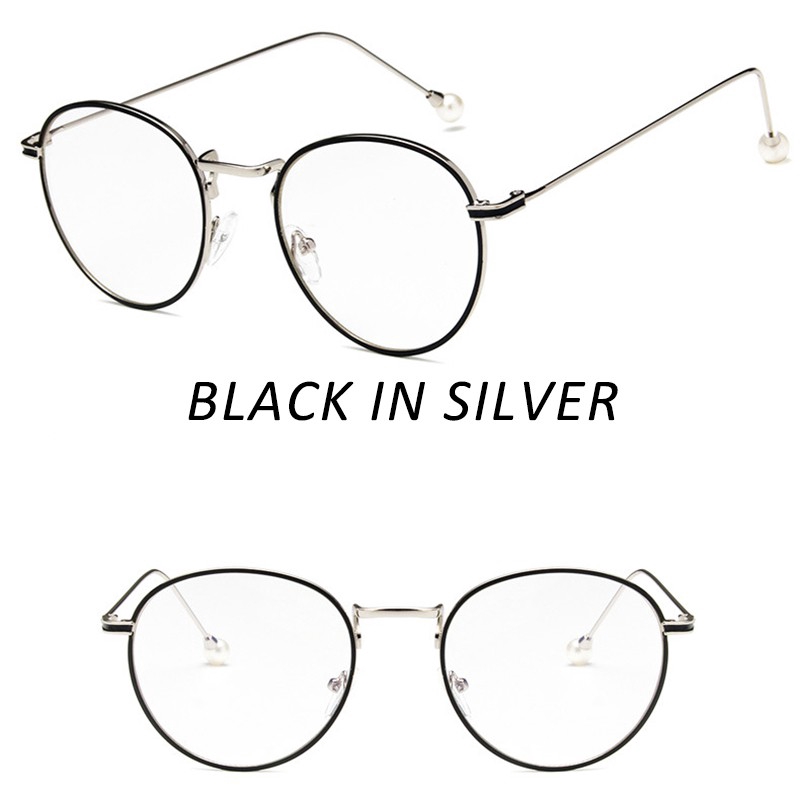 Kính mắt gọng kim loại đính ngọc trai giả sành điệu cho nữ