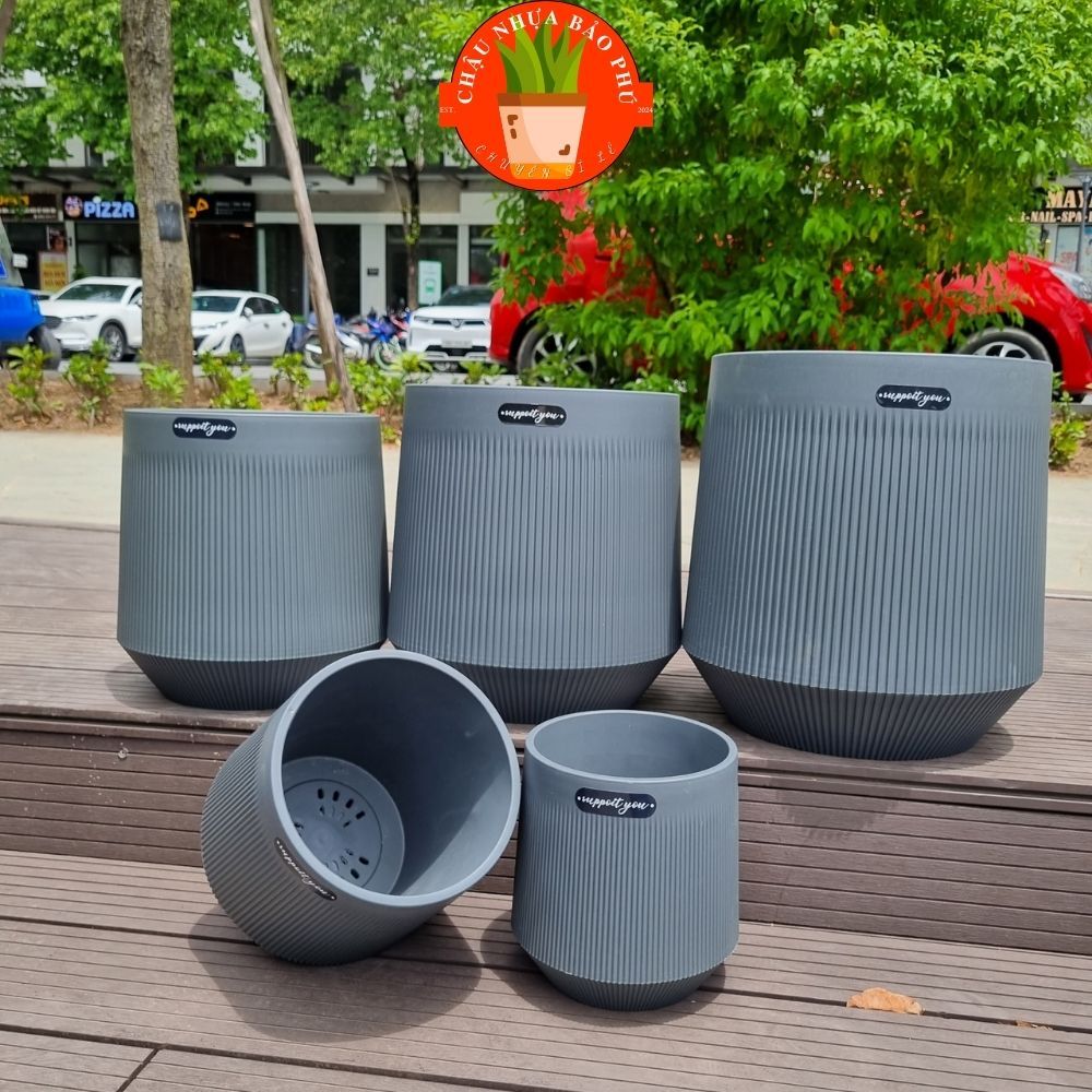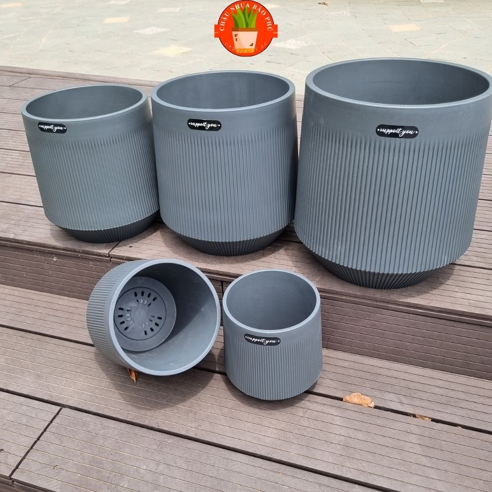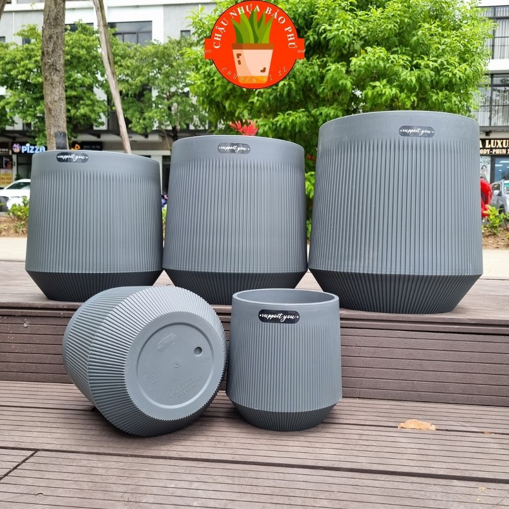 Chậu nhựa trồng cây, vân sọc hai đáy hàng Nhập Khẩu. Trang trí nhà cửa sân vườn, văn phòng, cửa tiệm