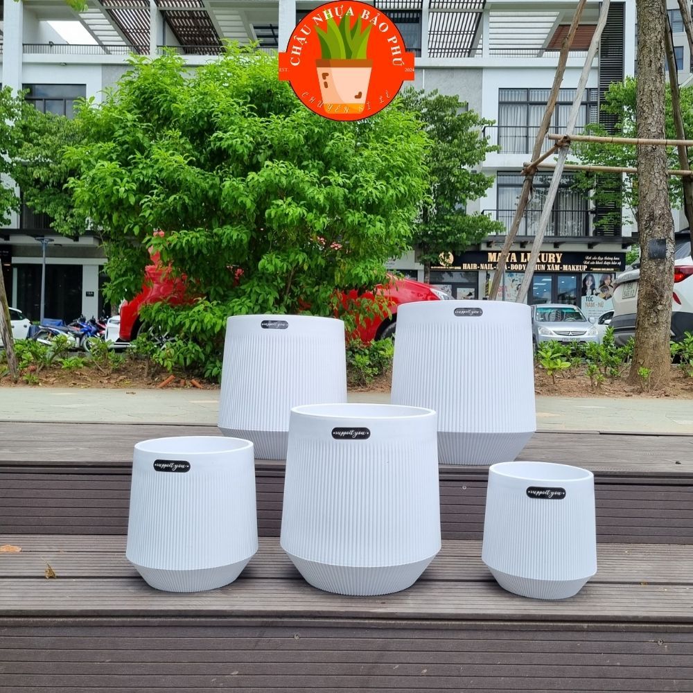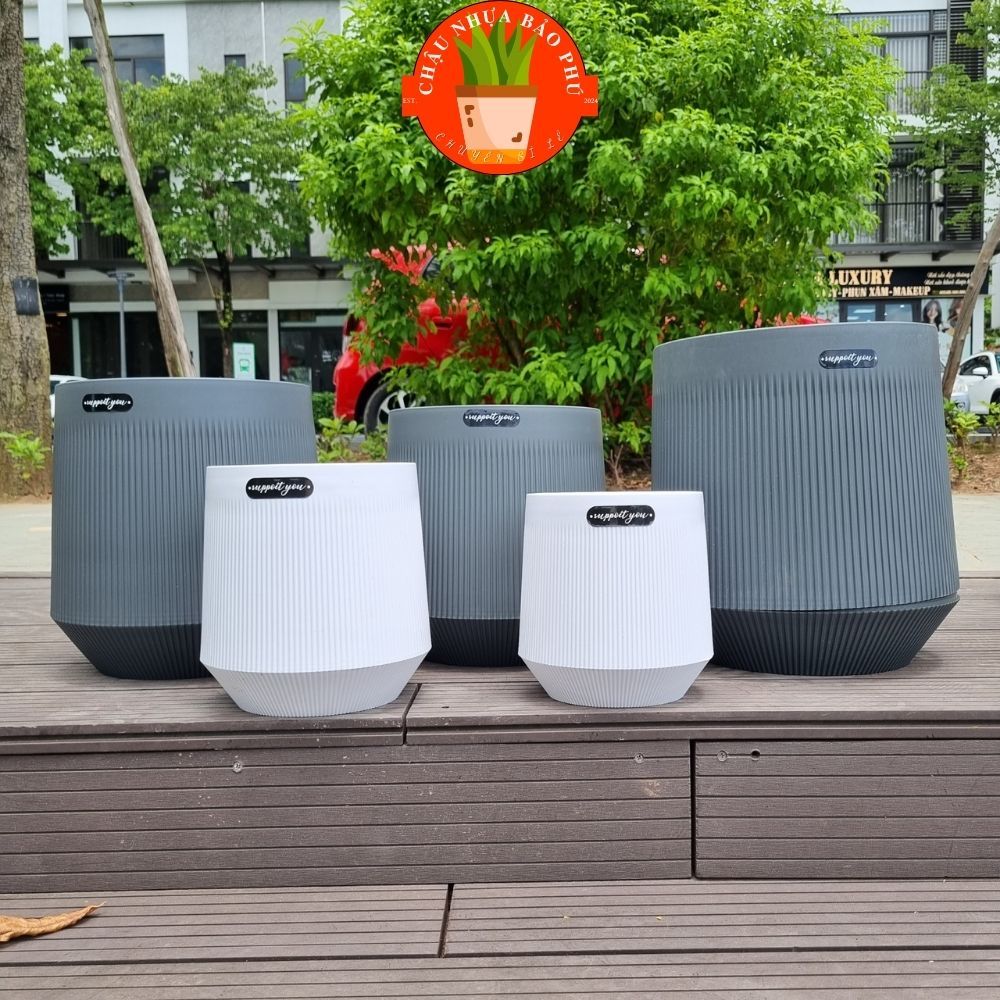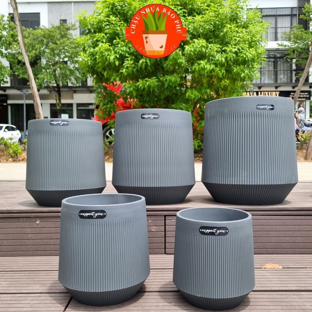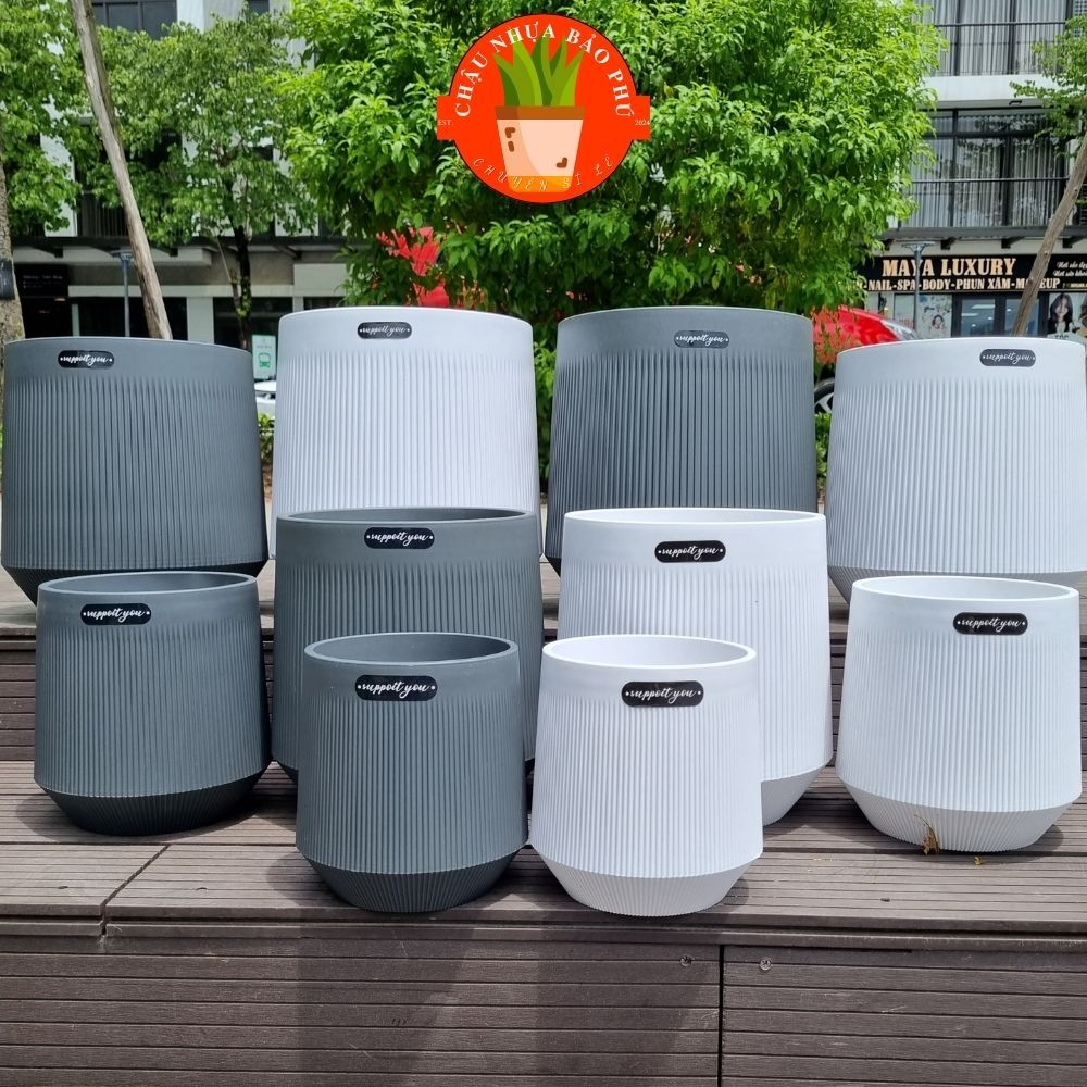 Chậu nhựa trồng cây, vân sọc hai đáy hàng Nhập Khẩu. Trang trí nhà cửa sân vườn, văn phòng, cửa tiệm