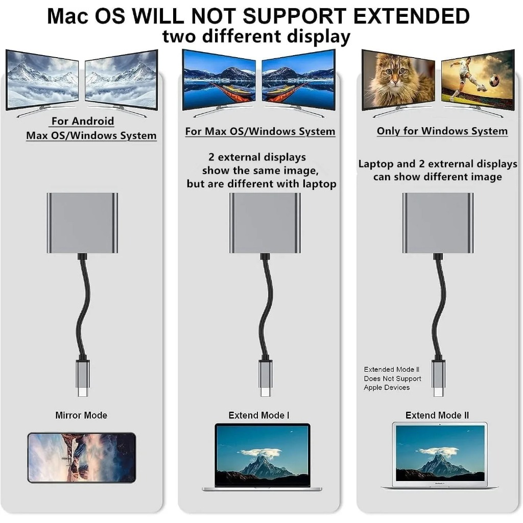 Usb C Sang 2 Bộ Chuyển Đổi Tương Thích HDMI Loại C Sang Dual HDMI Đa Màn Hình Nối Dài 4K HD Hiển Thị Bộ Chia Cho Windows Mac Mac Máy Tính Laptop Máy Chiếu