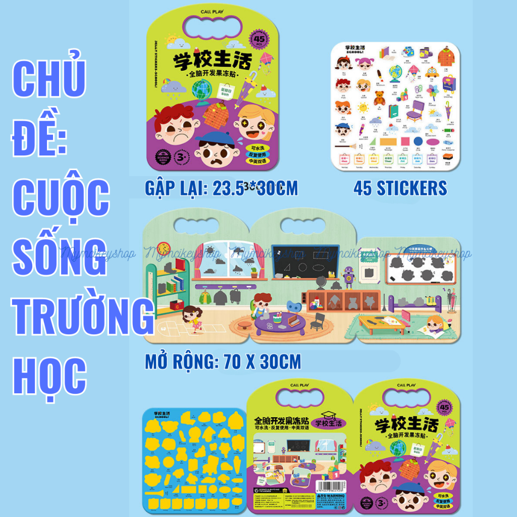 Reusable Jelly Stickers đồ chơi bóc dán nhiều lần 3 chủ đề hãng Call Play nông trại trường học