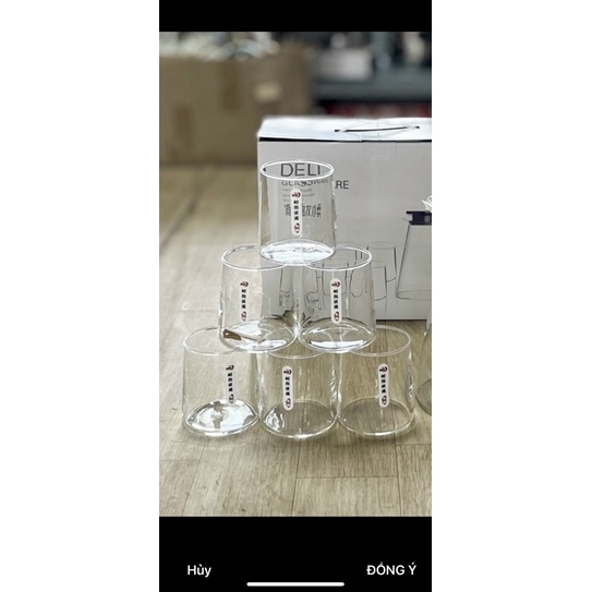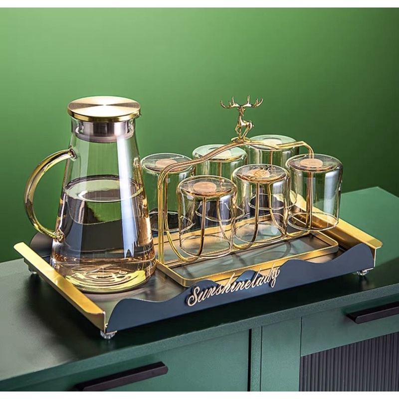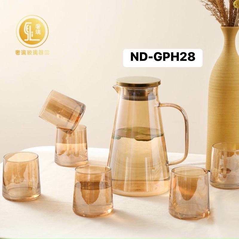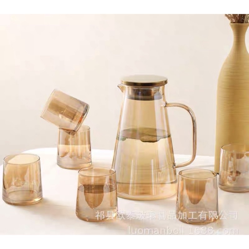 Sét Bộ bình cốc chịu nhiệt thủy tinh màu hổ phách cao cấp sang trọng