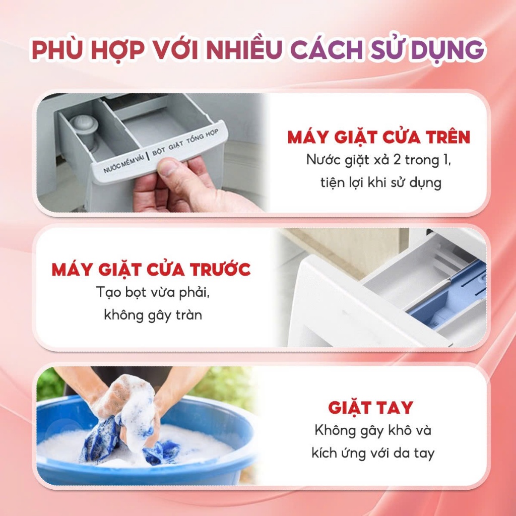 [Combo 2 túi] Nước Giặt Xả 888 Hương Nước Hoa Bali 2Kg/túi, lưu hương 72 giờ / ko hại da tay / công nghệ châu âu