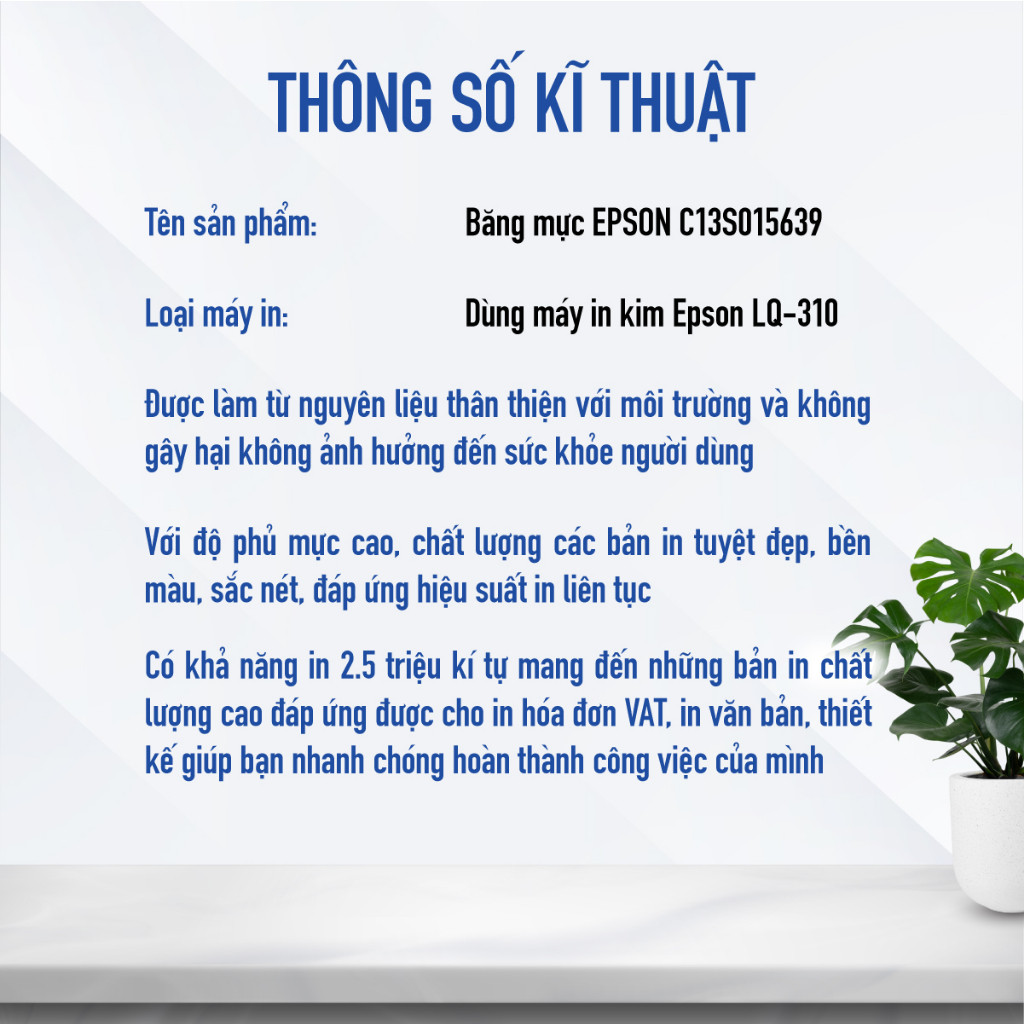 Băng Mực Máy In Kim Epson C13S015639 Cho Máy LQ310 Độ Phủ Mực Cao Giúp In Mượt Và Đều Màu