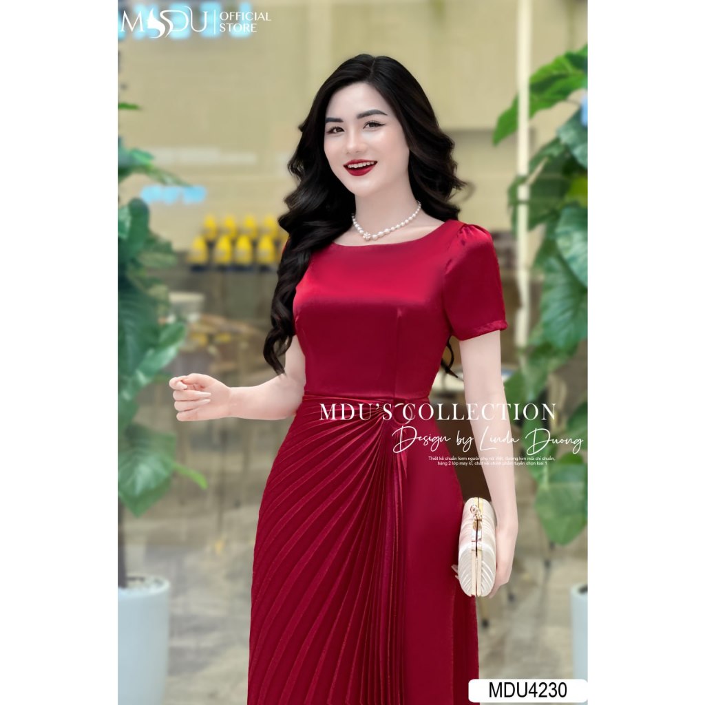 Váy Lụa Sang MDU4230 Thiết Kế Cổ Thuyền Cùng Gam Màu Đỏ Vô Cùng Nổi Bật Từ MDU