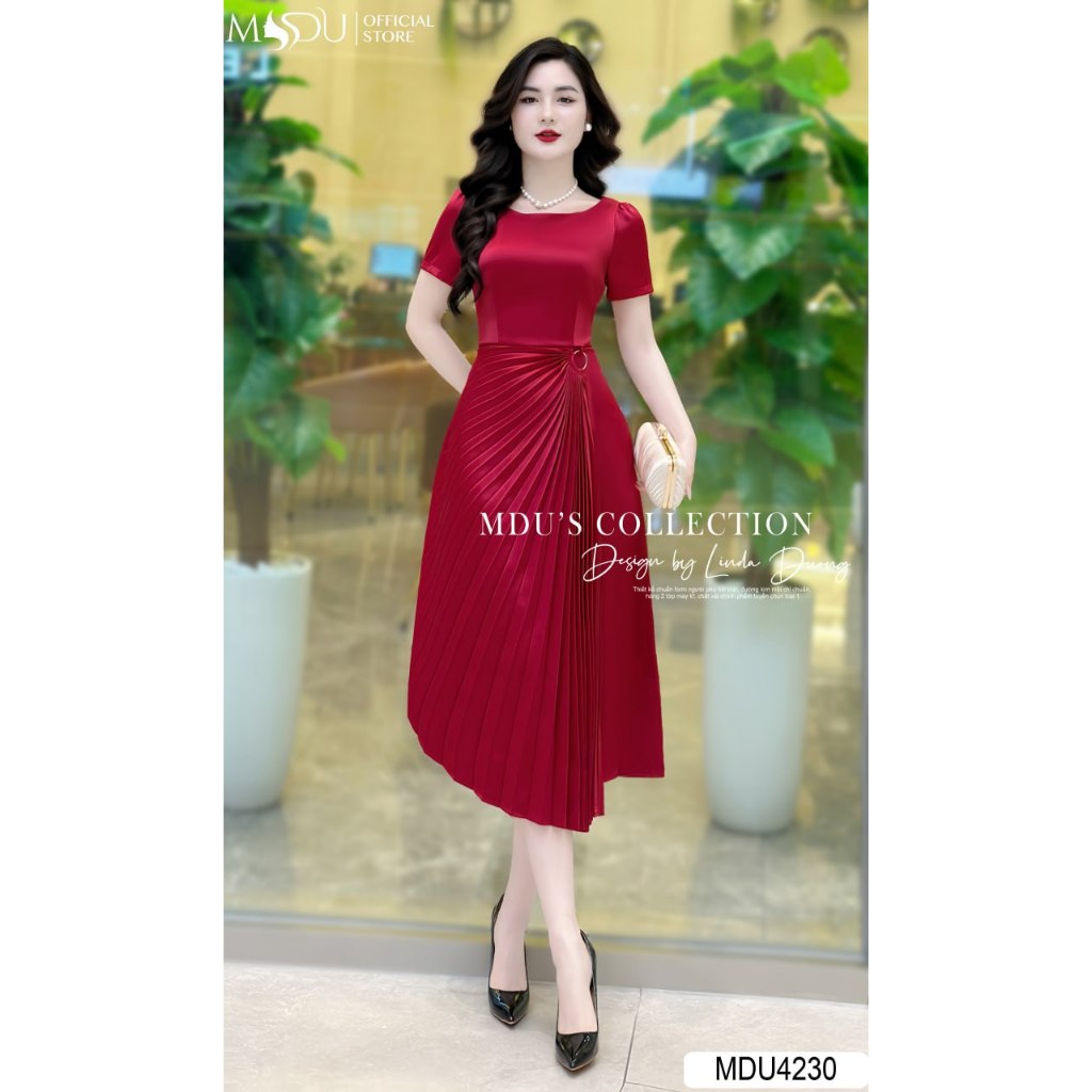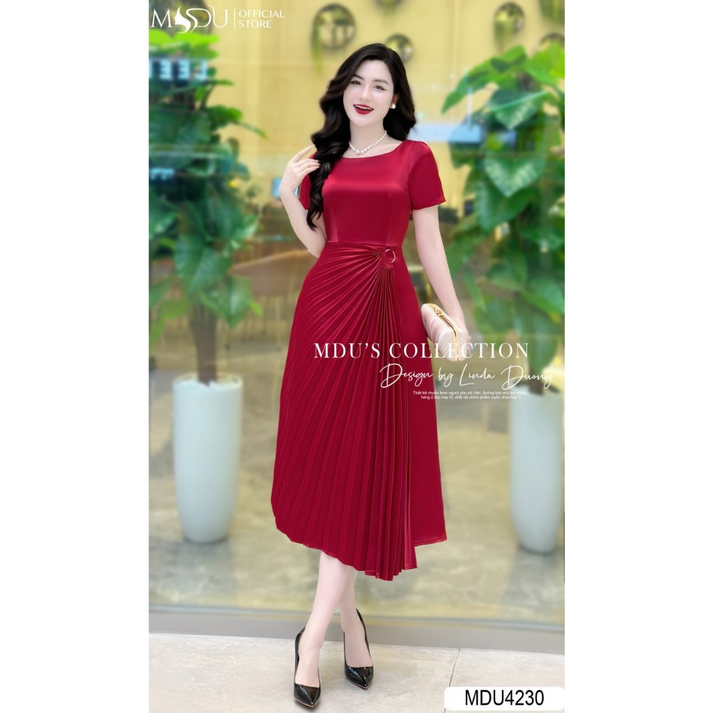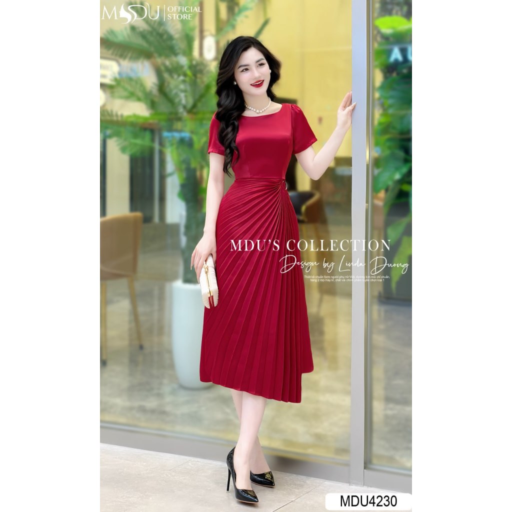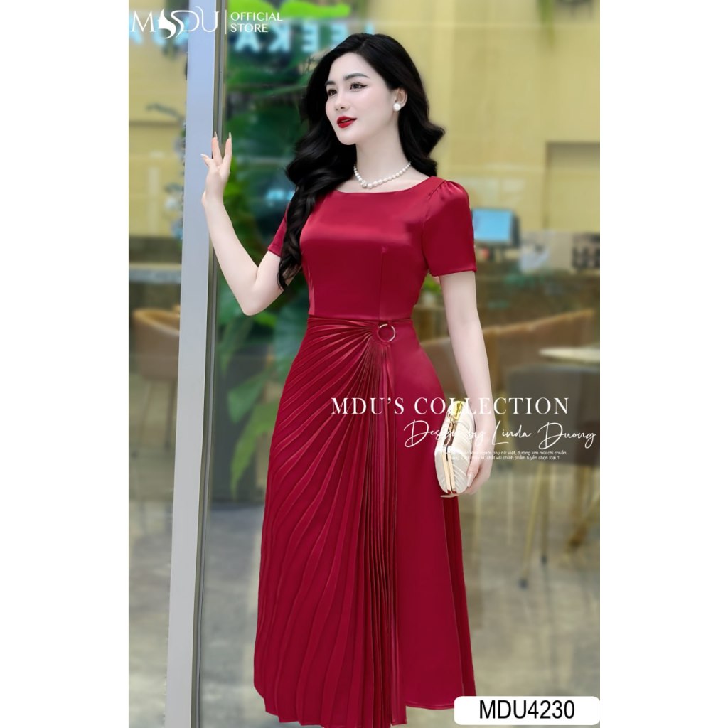 Váy Lụa Sang MDU4230 Thiết Kế Cổ Thuyền Cùng Gam Màu Đỏ Vô Cùng Nổi Bật Từ MDU