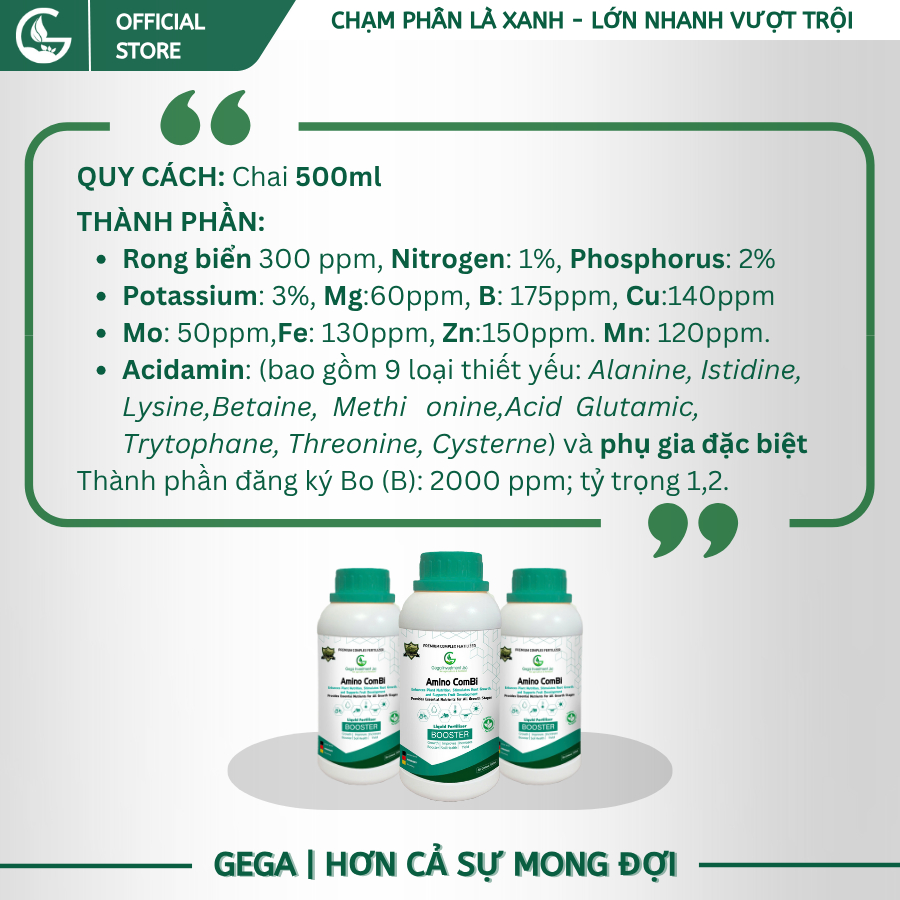 Phân hữu cơ, phân bón lá mát cây, phân dưỡng cây lá to dày - AMINO COMBI RONG BIỂN 500ml - GEGA