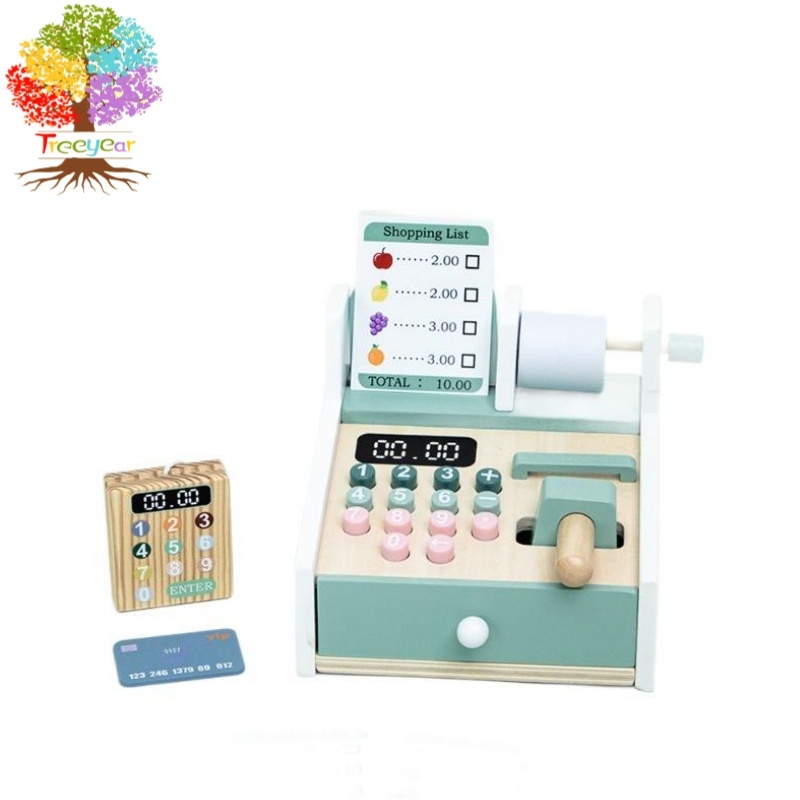 Đồ chơi trẻ em bằng gỗ giáo dục cho bé trai và bé gái nhà chơi mô phỏng bộ máy tính tiền tính toán quét vuốt thu ngân