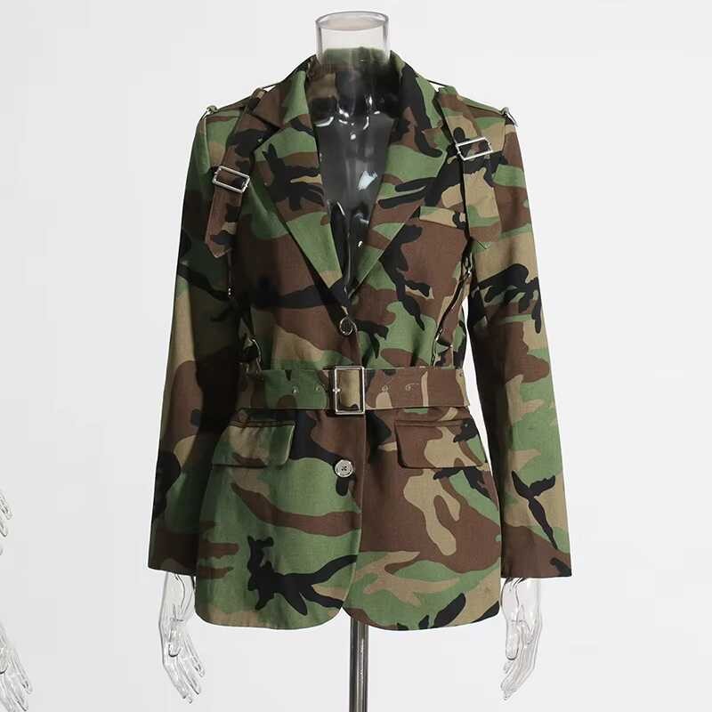 Phụ Nữ Hai Màu Ngụy Trang Thắt Lưng Giải Trí Đứng Lên Cổ Dài Tay Áo Đính Đầu