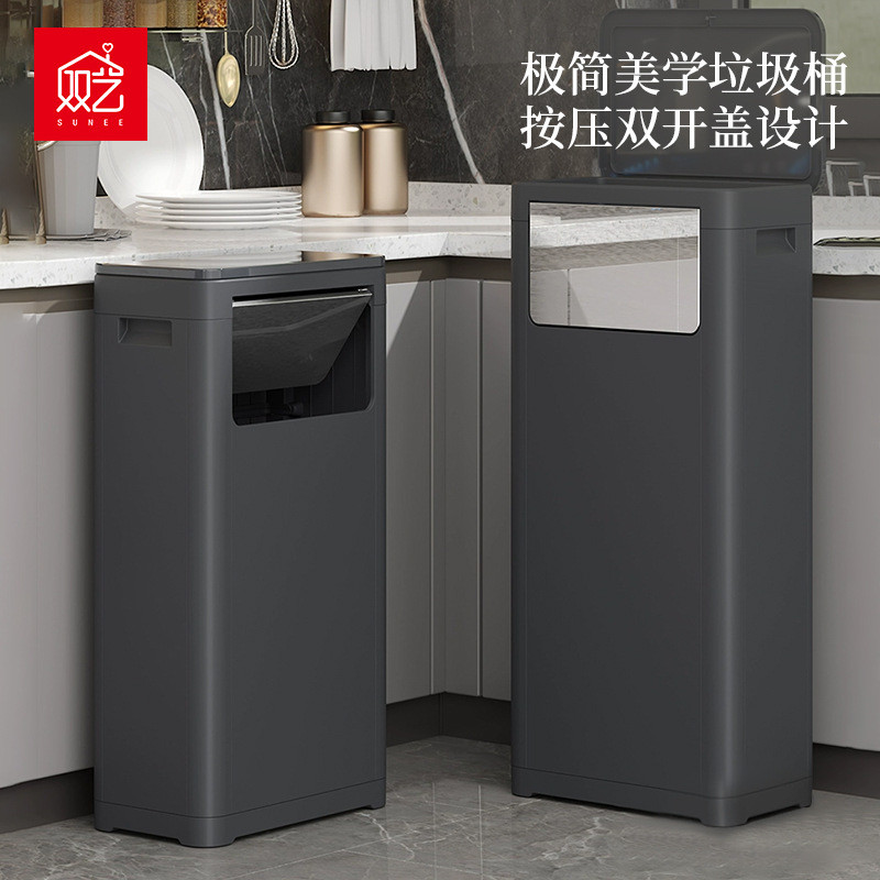 Thùng rác có thể mở đôi Chế độ nắp mở Thùng rác nhà bếp không uốn cong Thùng rác ngoài trời thương mại Thùng rác dung tích lớn