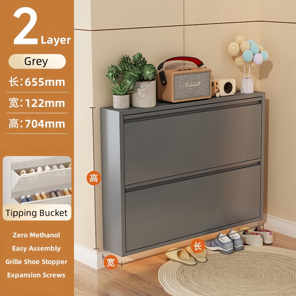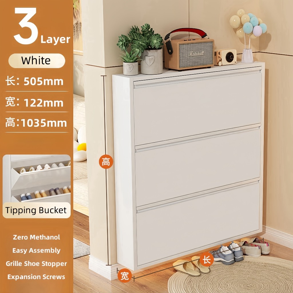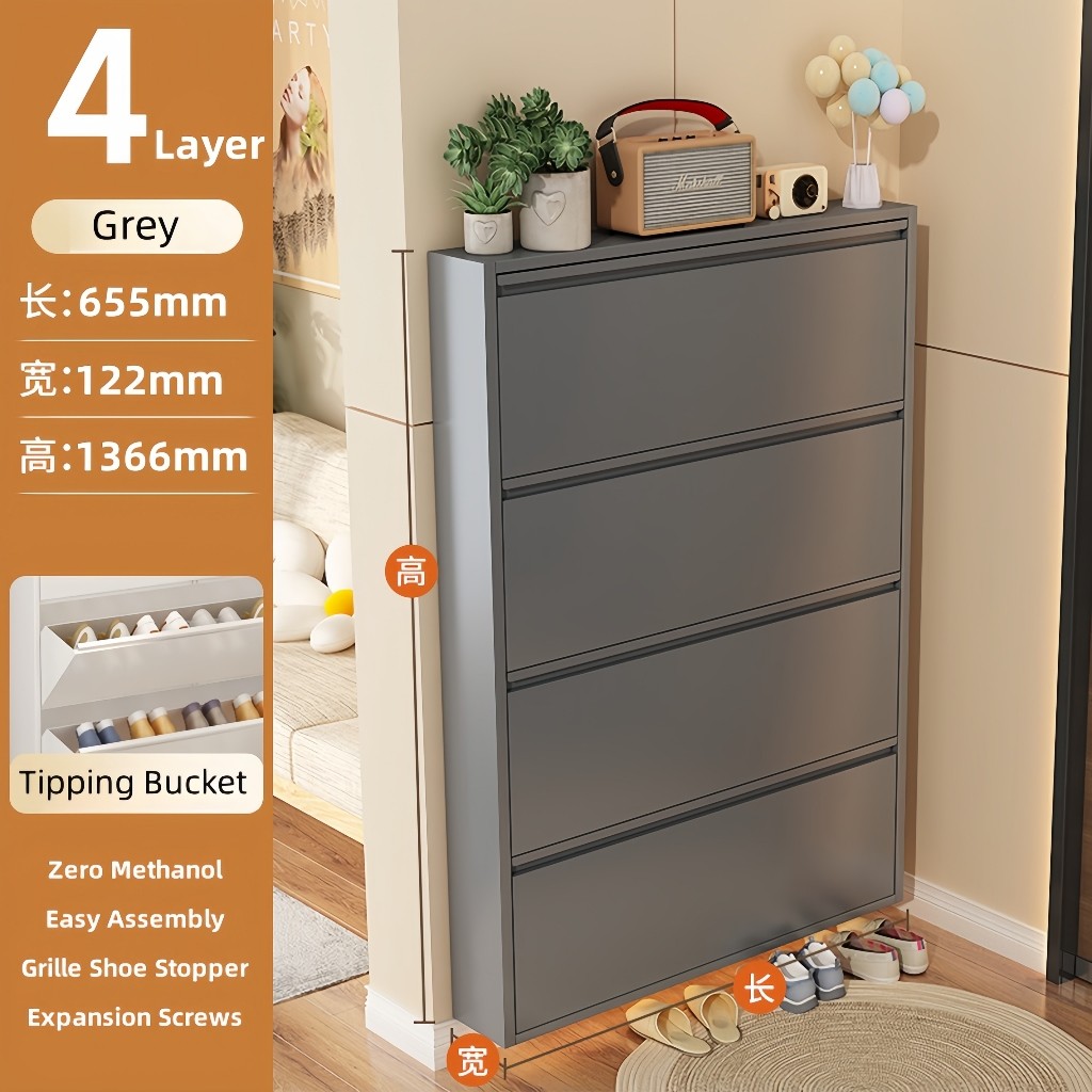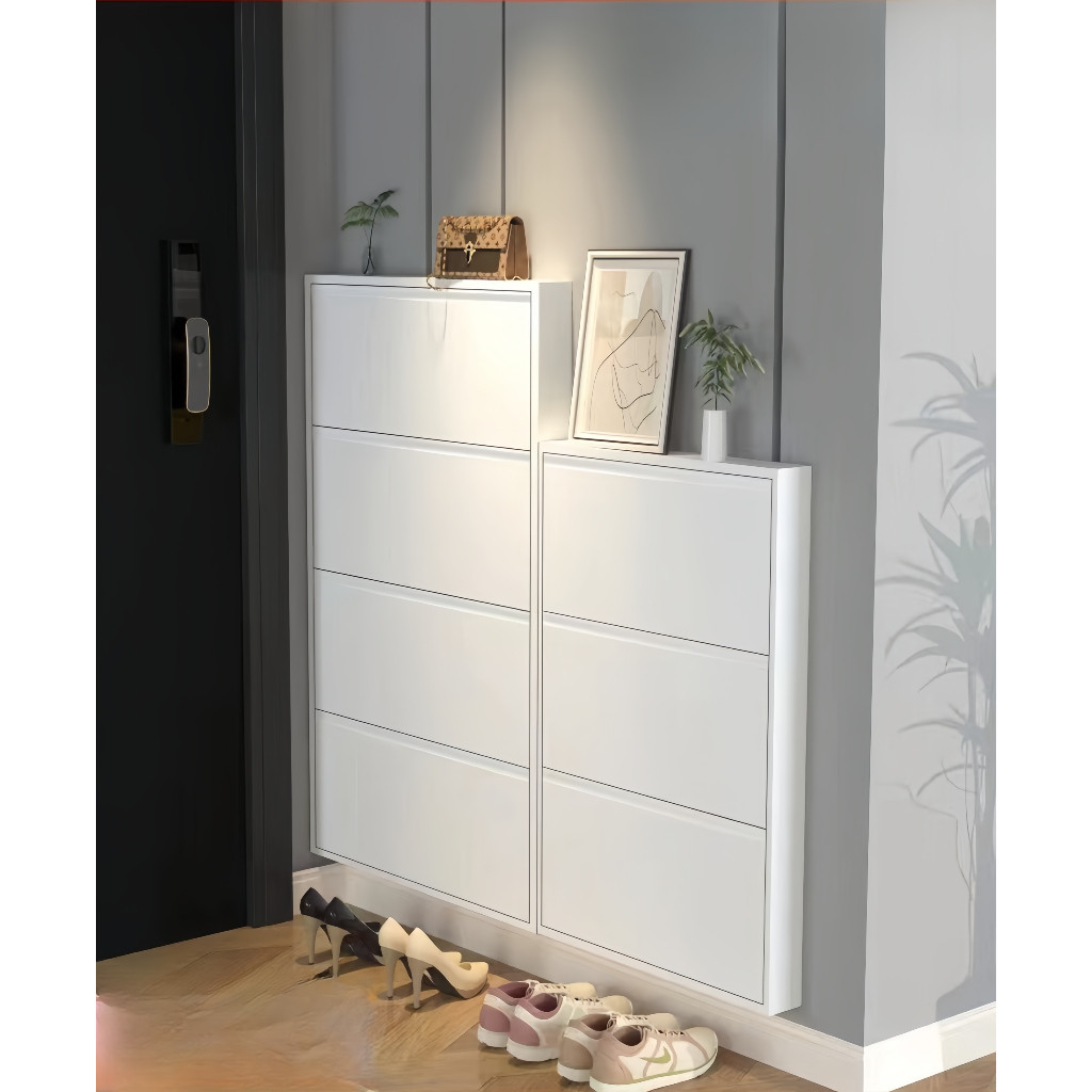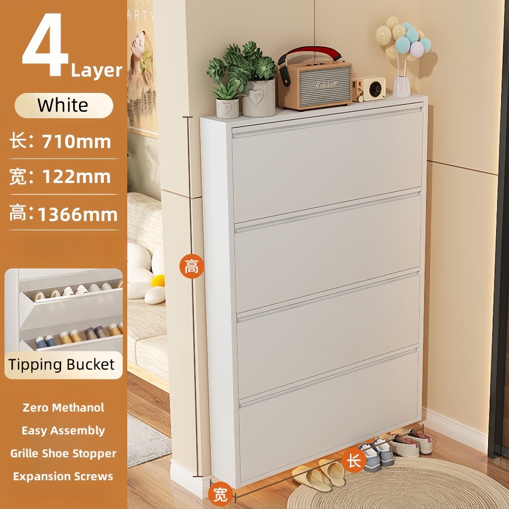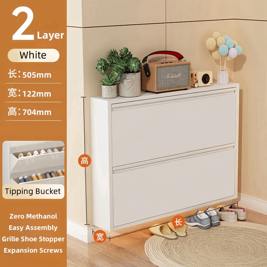 Tủ giày mỏng hiện đại gắn tường, dung tích lớn, nhiều lớp, tủ giày bằng thép trắng chống nước