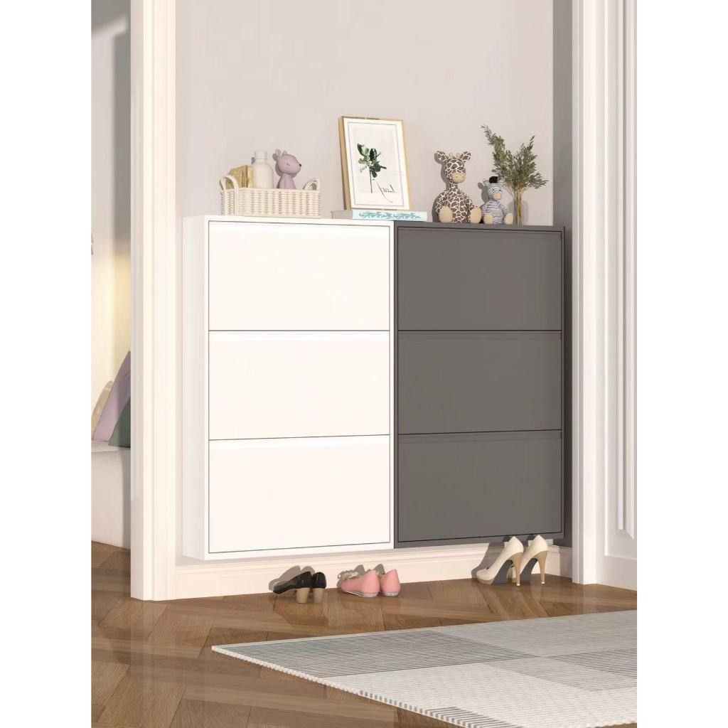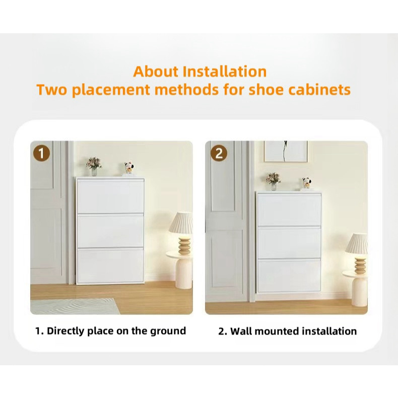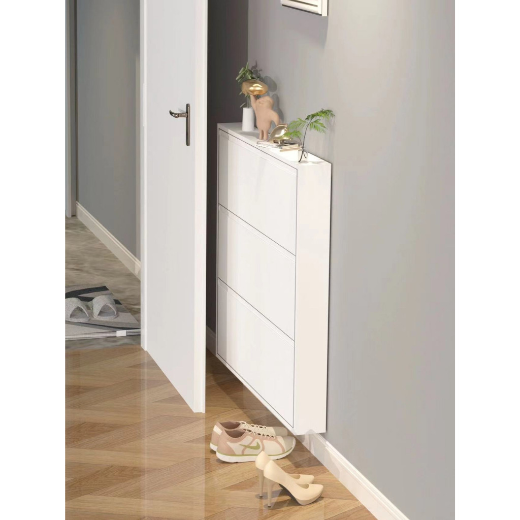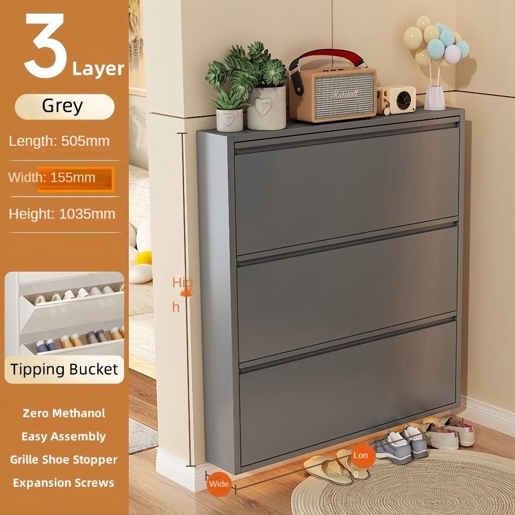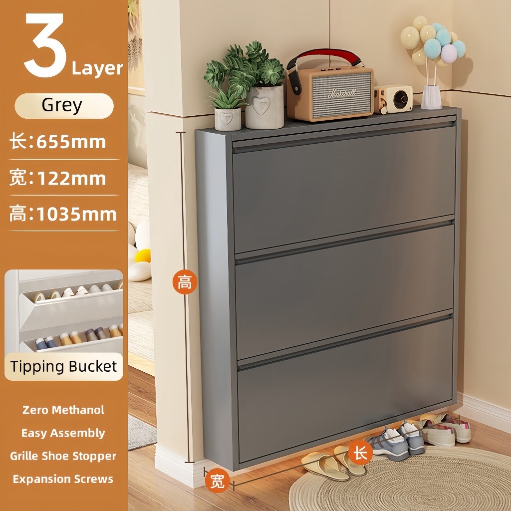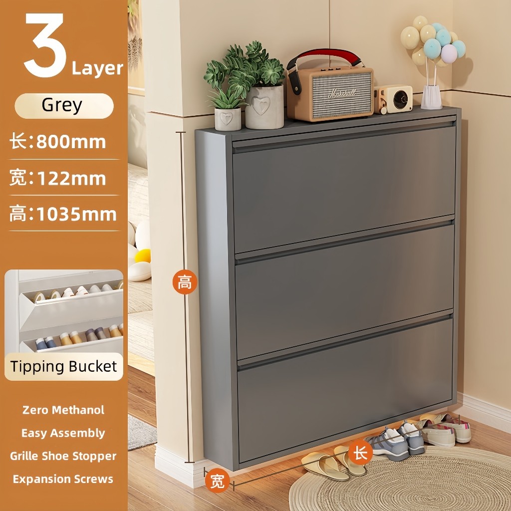 Tủ giày mỏng hiện đại gắn tường, dung tích lớn, nhiều lớp, tủ giày bằng thép trắng chống nước