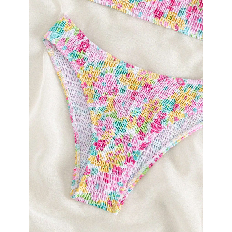 (CÓ SẴN) Áo bikini hoa nhún màu pastel dễ thương - KÈM ẢNH THẬT