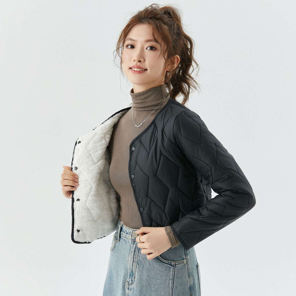 Mùa Đông Nữ Cừu Lông Cừu Áo Khoác Đệm Cotton Thời Trang Nữ Cotton Top Đệm Lông Cừu Ngắn Áo Khoác Đệm Cotton Ấm Lót Nữ 8225